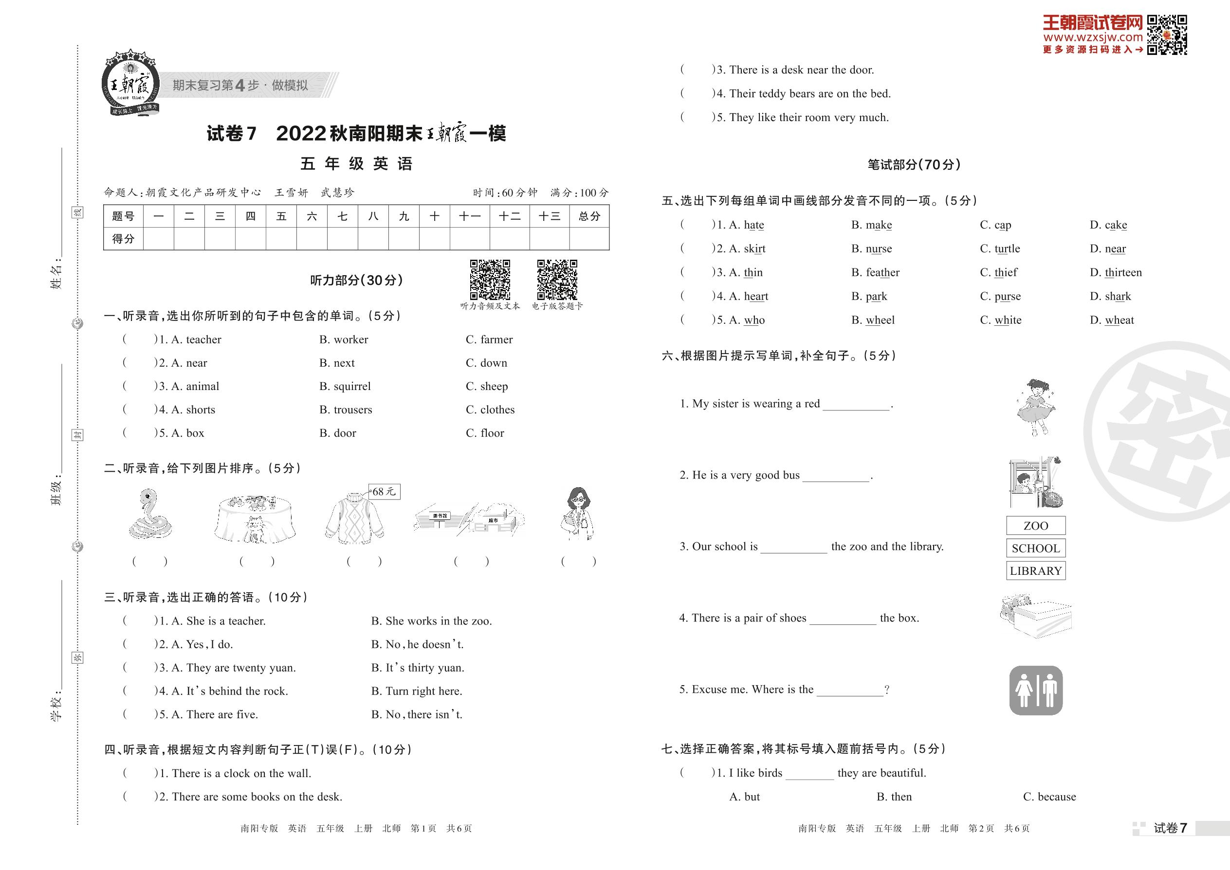 王朝霞期末模拟卷五年级上册英语(北师版)_R221123143706097【7】