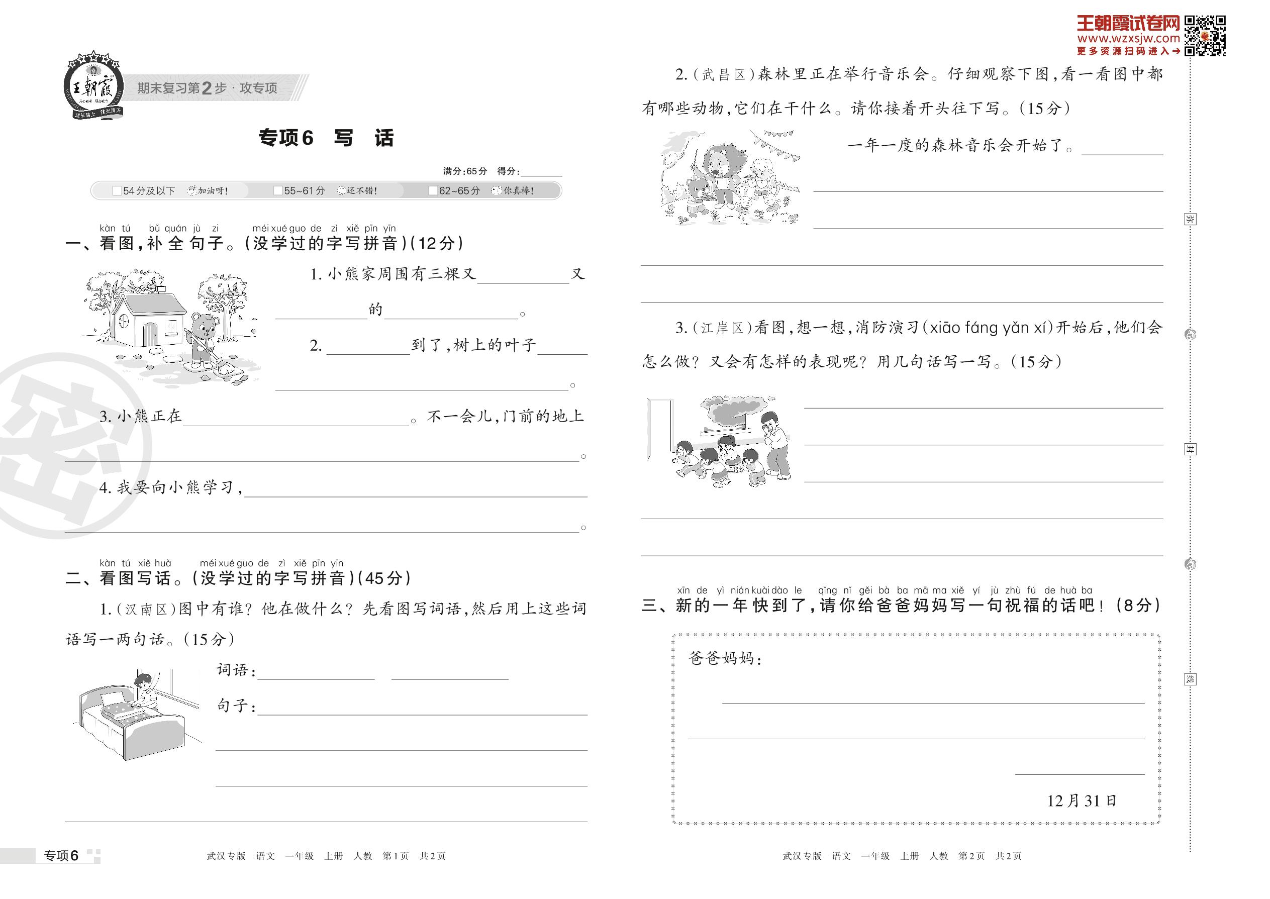 王朝霞期末专项卷——写话一年级上册语文(人教版)_R221123145544020【6】