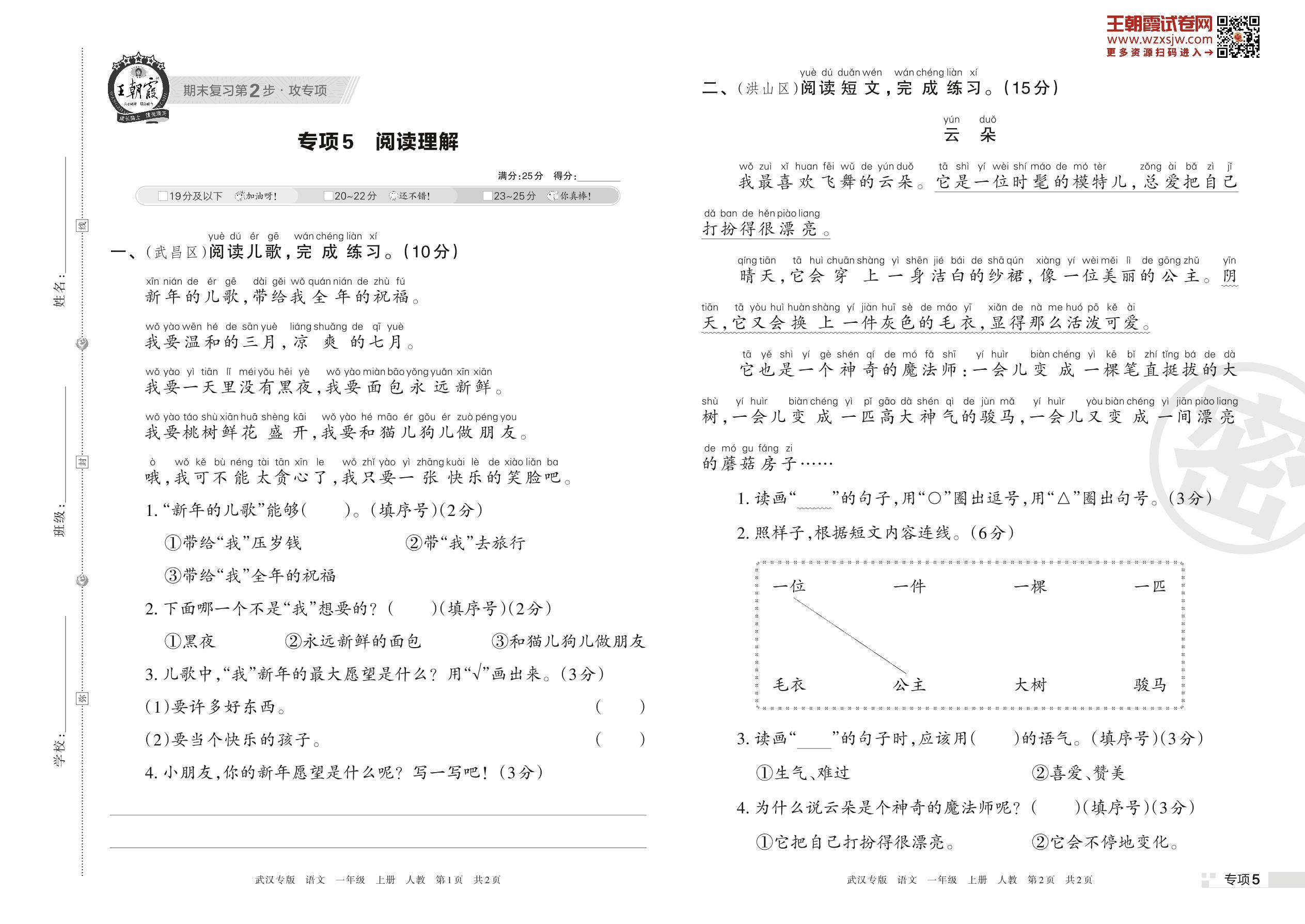 王朝霞期末专项卷——阅读理解一年级上册语文(人教版)_R221123145545518【5】