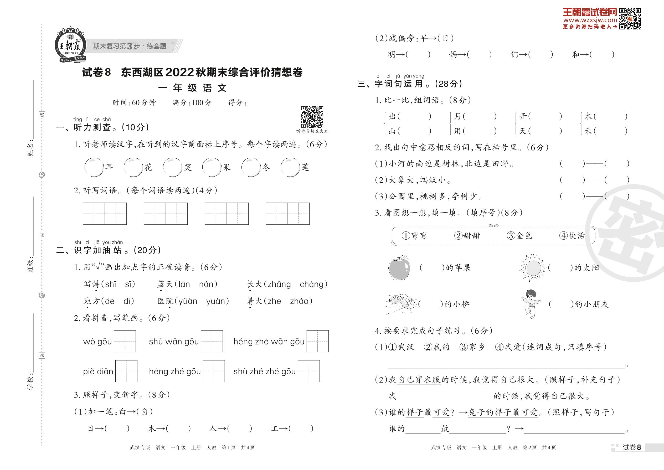 东西湖区2022秋期末综合评价猜想卷一年级上册语文(人教版)【8】