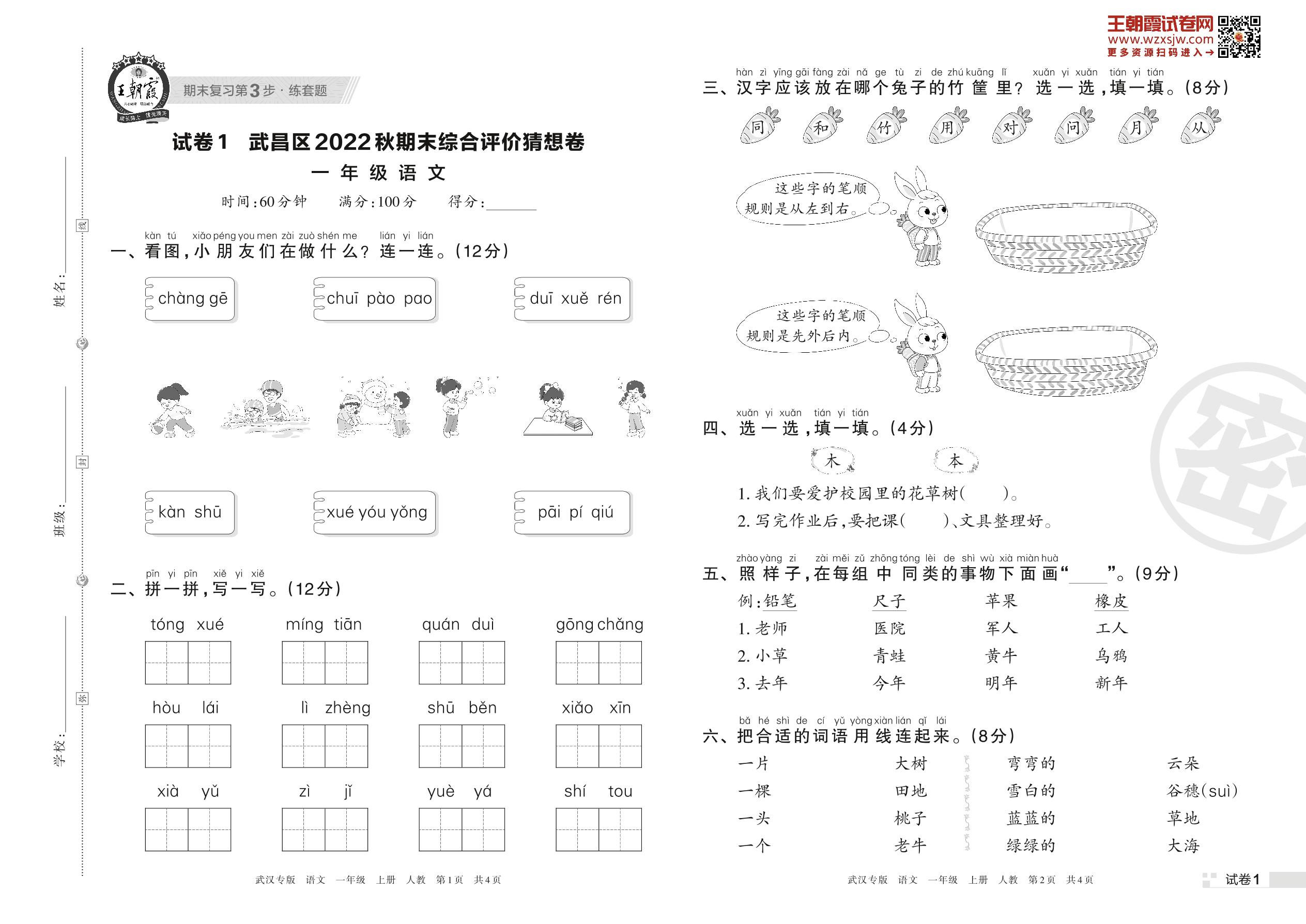武昌区2022秋期末综合评价猜想卷一年级上册语文(人教版)【1】