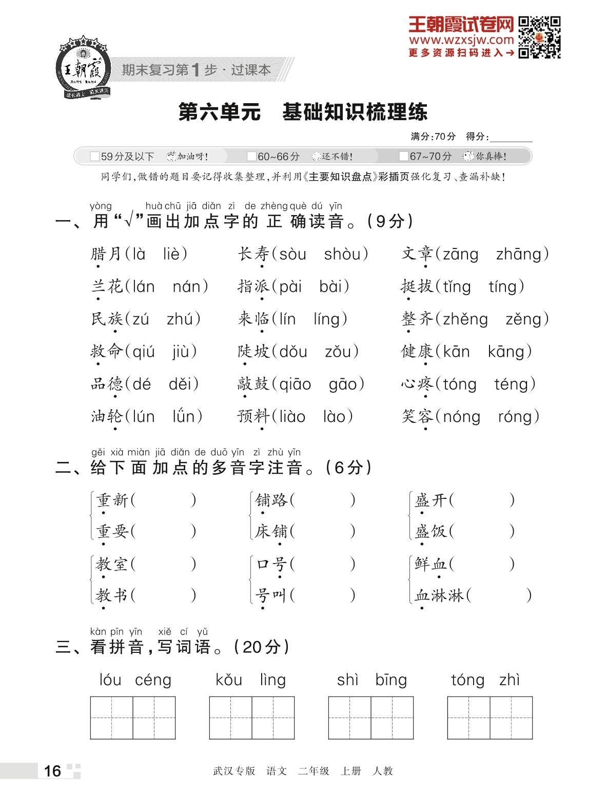 王朝霞期末过课本——第六单元 基础知识梳理练二年级上册语文(人教版)_R221123150219970