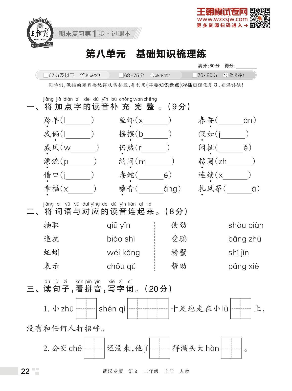 王朝霞期末过课本——第八单元 基础知识梳理练二年级上册语文(人教版)_R221123150219713
