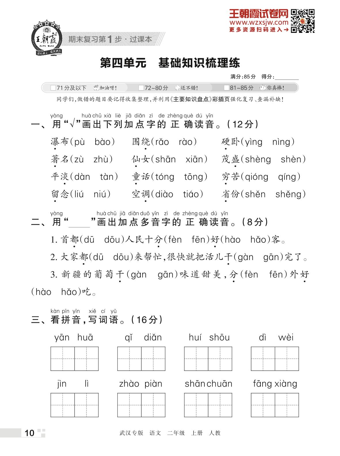 王朝霞期末过课本——第四单元 基础知识梳理练二年级上册语文(人教版)_R221123150219275