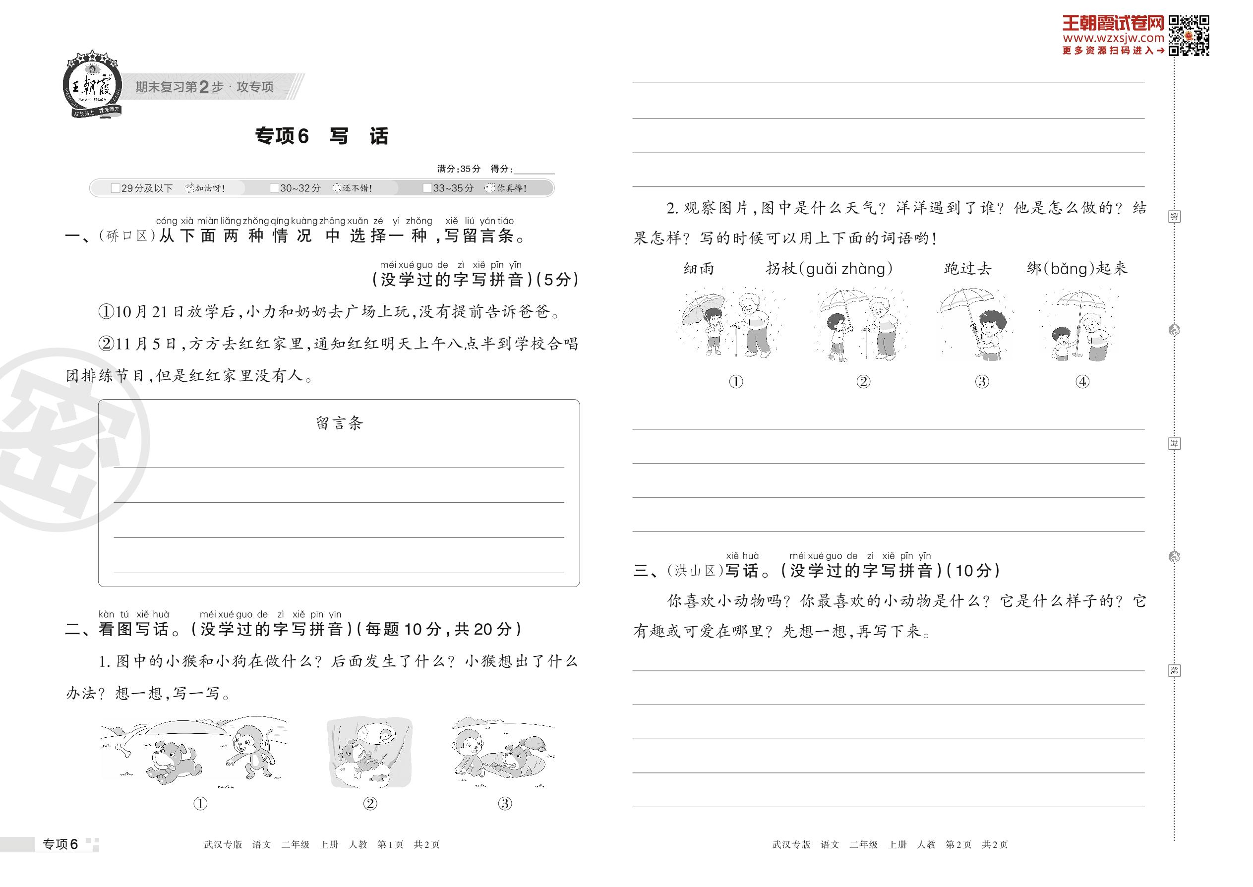 王朝霞期末专项卷——写话二年级上册语文(人教版)_R221123150220489【6】