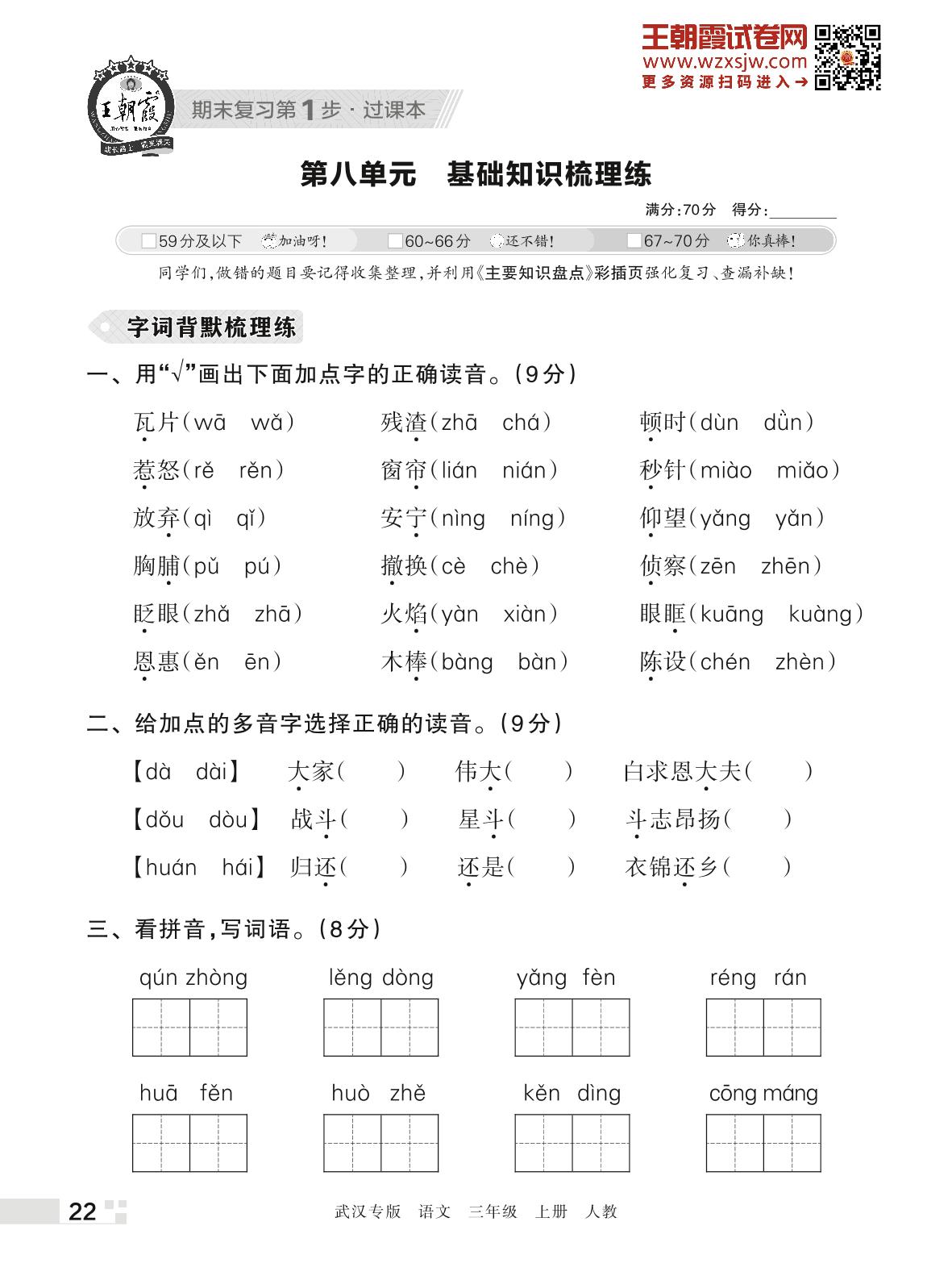 王朝霞期末过课本——第八单元 基础知识梳理练三年级上册语文(人教版)_R221123150834699