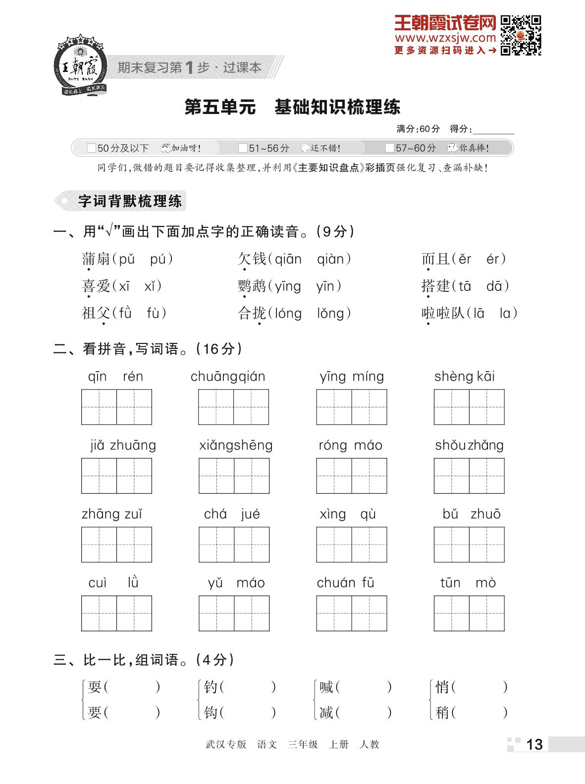 王朝霞期末过课本——第五单元 基础知识梳理练三年级上册语文(人教版)_R221123150836404