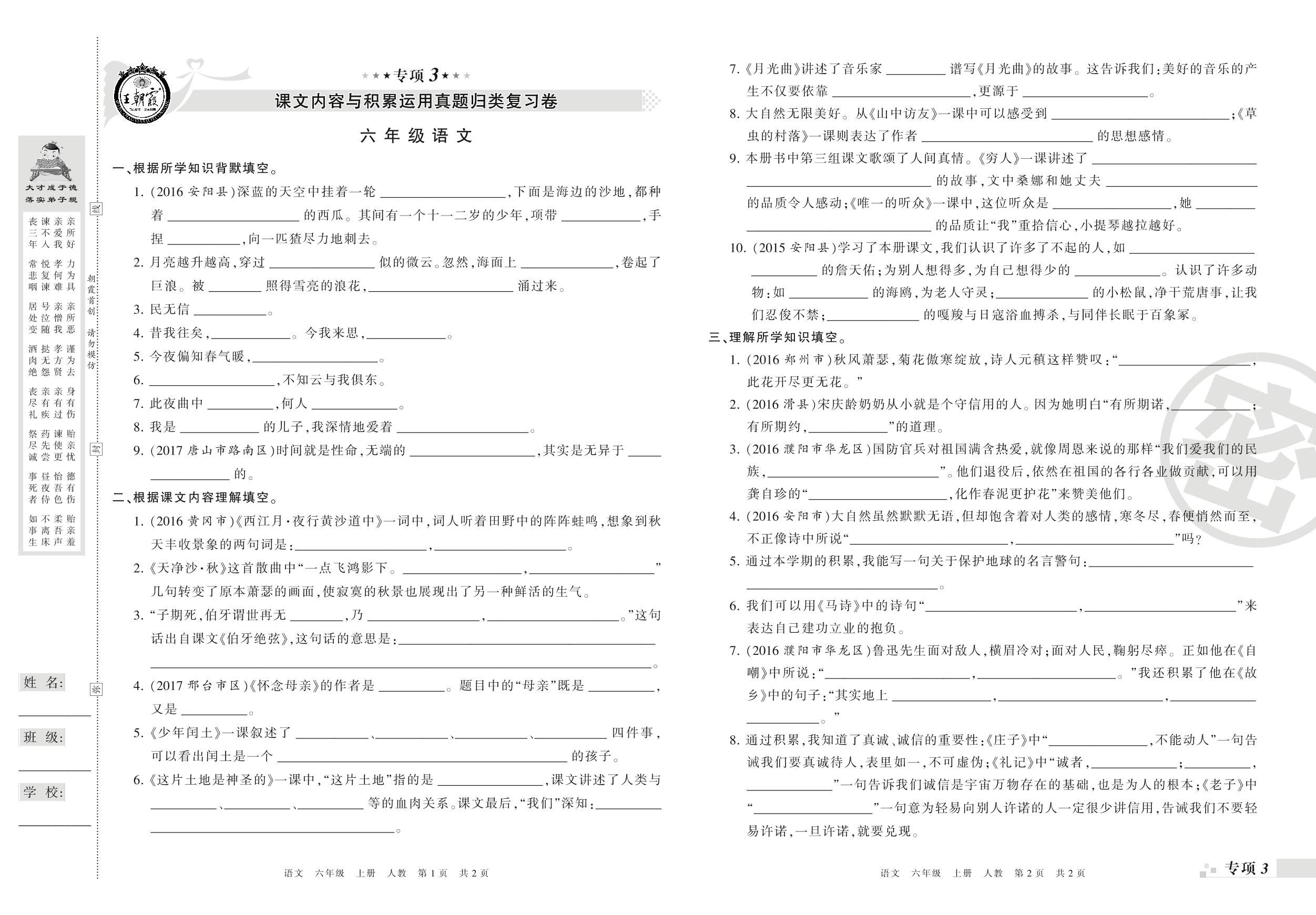 王朝霞期末专项卷——课文内容与积累运用真题归类复习卷六年级上册语文(人教版)_R210802115300【0】