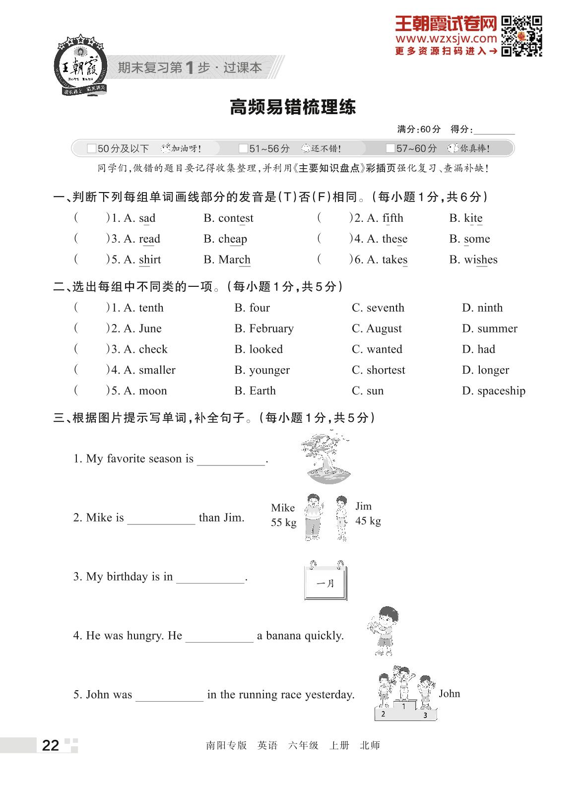 王朝霞期末过课本——高频易错梳理练六年级上册英语(北师版)