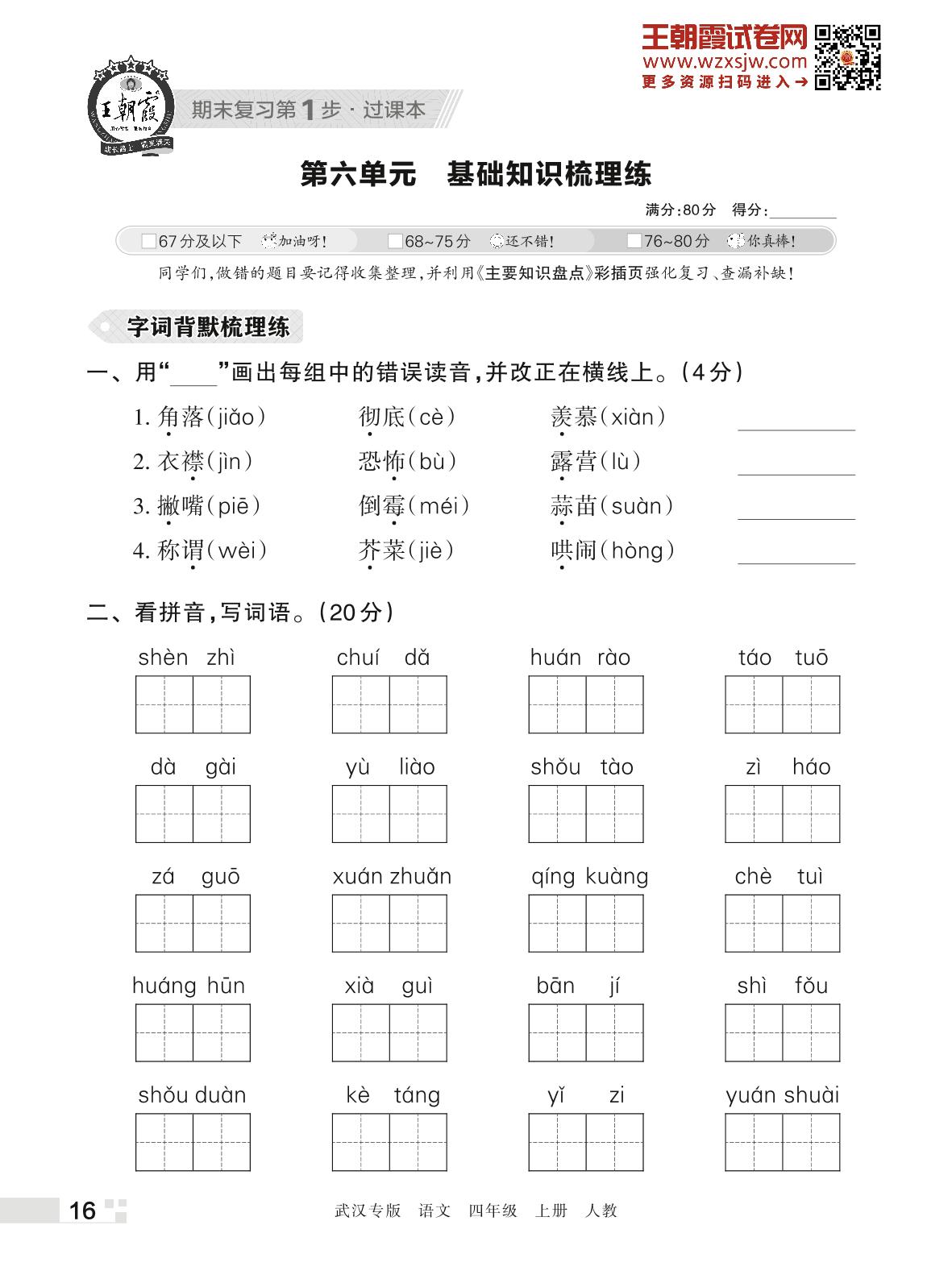 王朝霞期末过课本——第六单元 基础知识梳理练四年级上册语文(人教版)_R221123151500017
