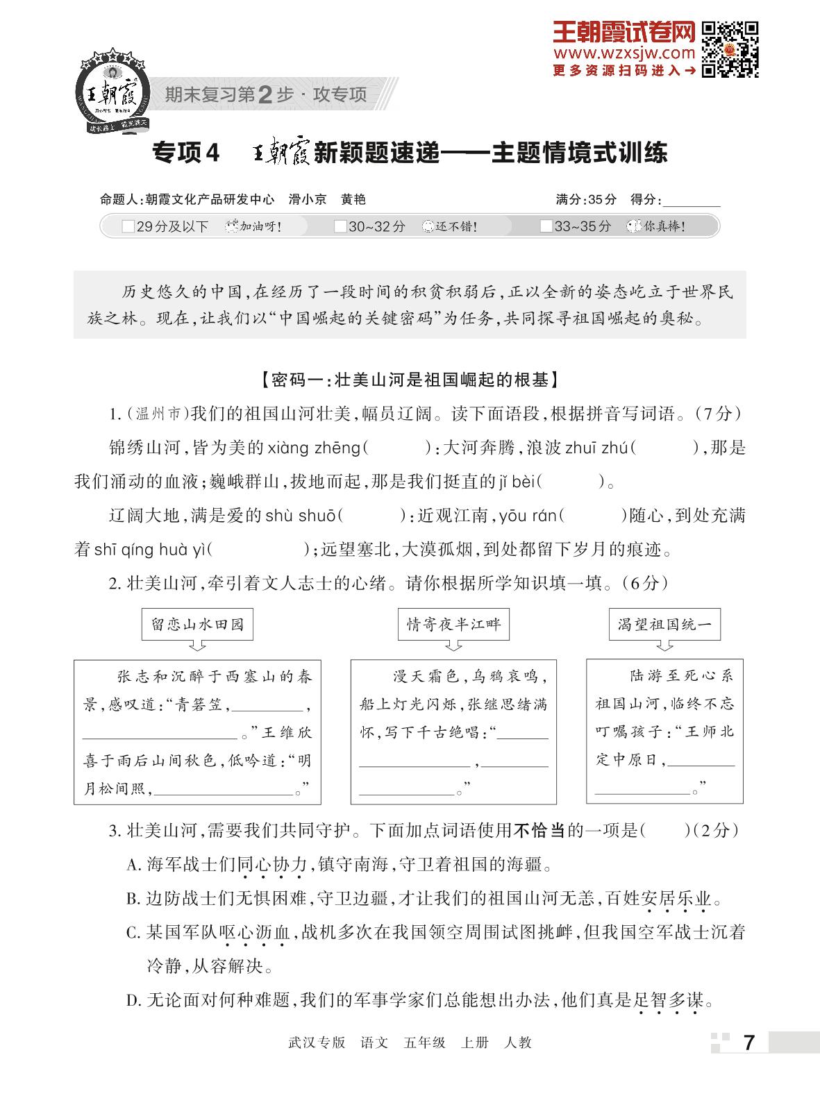王朝霞期末专项卷——王朝霞新颖题速递:主题情境式训练五年级上册语文(人教版)_R221123152107102【4】