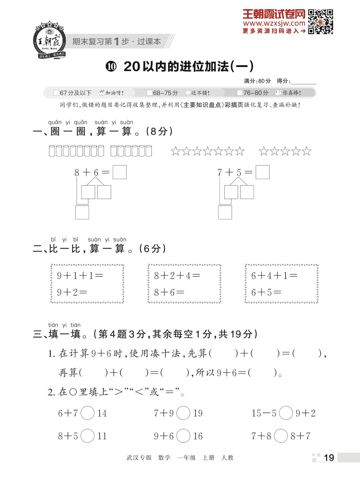 王朝霞期末过课本——10 20以内的进位加法(一)一年级数学上册(人教版)