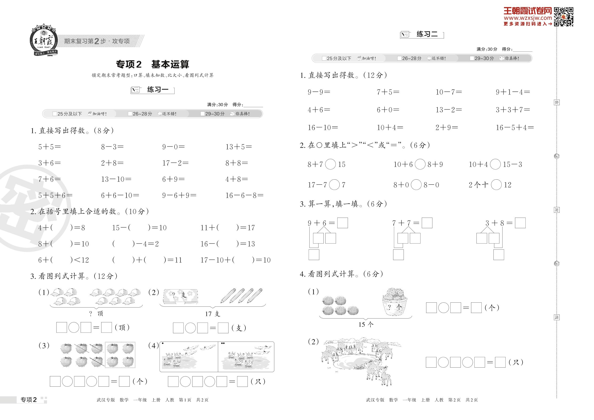 王朝霞期末专项卷——基本运算一年级上册数学(人教版)_R221123153016970【2】