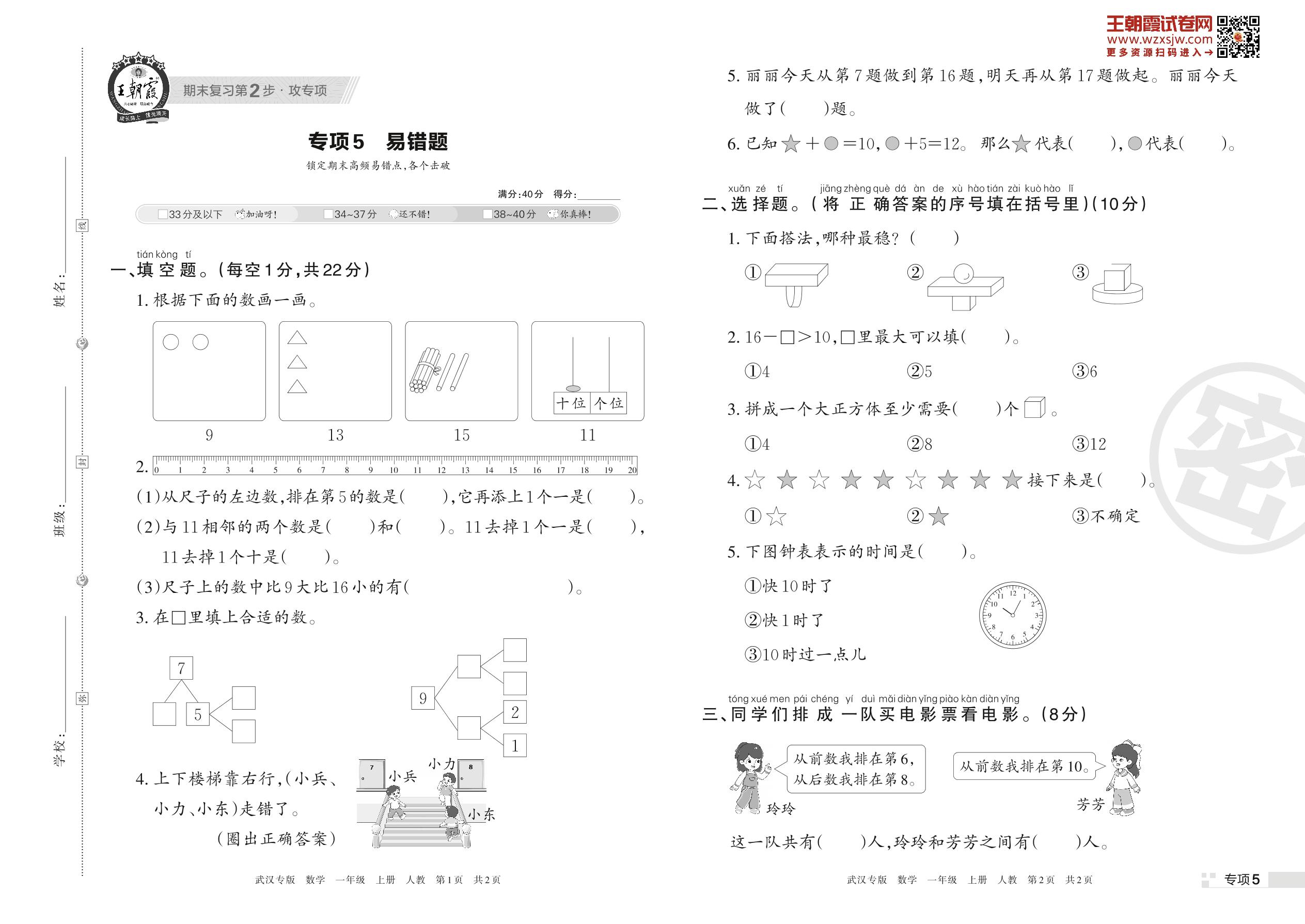 王朝霞期末专项卷——易错题一年级上册数学(人教版)_R221123153016124【5】
