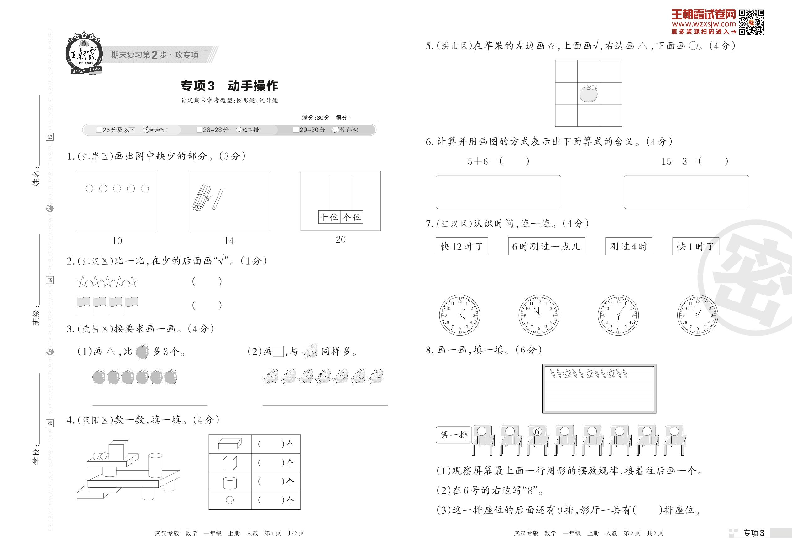 王朝霞期末专项卷——动手操作一年级上册数学(人教版)_R221123153016588【3】