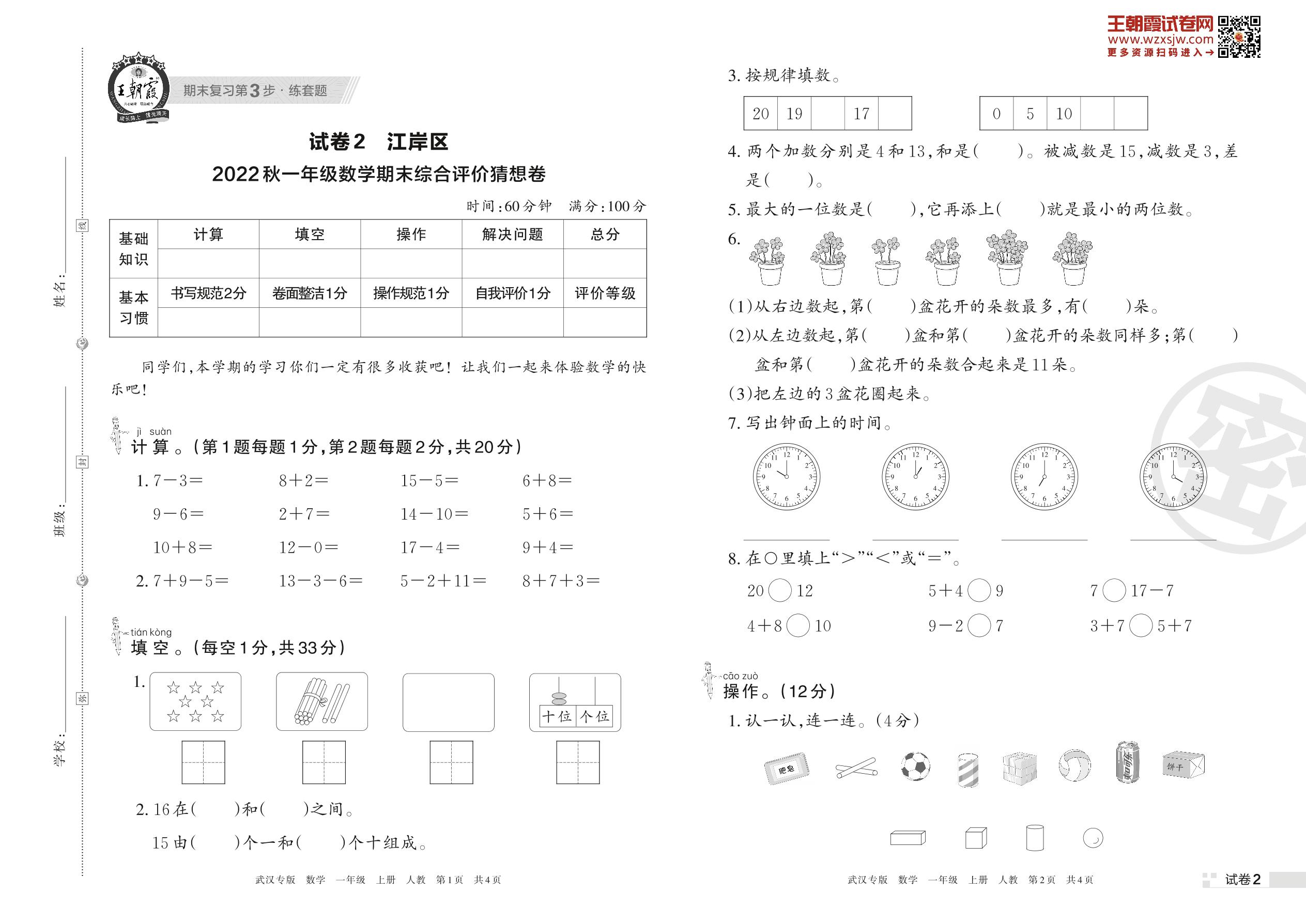 江岸区2022秋一年级数学期末综合评价猜想卷(人教版)【2】