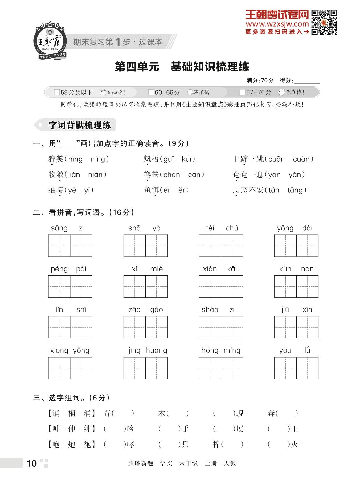 王朝霞期末过课本——第四单元 基础知识梳理练六年级上册语文(人教版)_R221123153159954