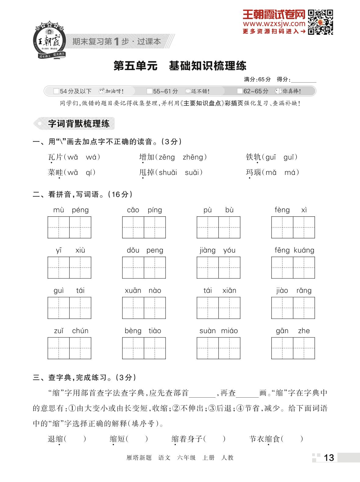 王朝霞期末过课本——第五单元 基础知识梳理练六年级上册语文(人教版)_R221123153159626