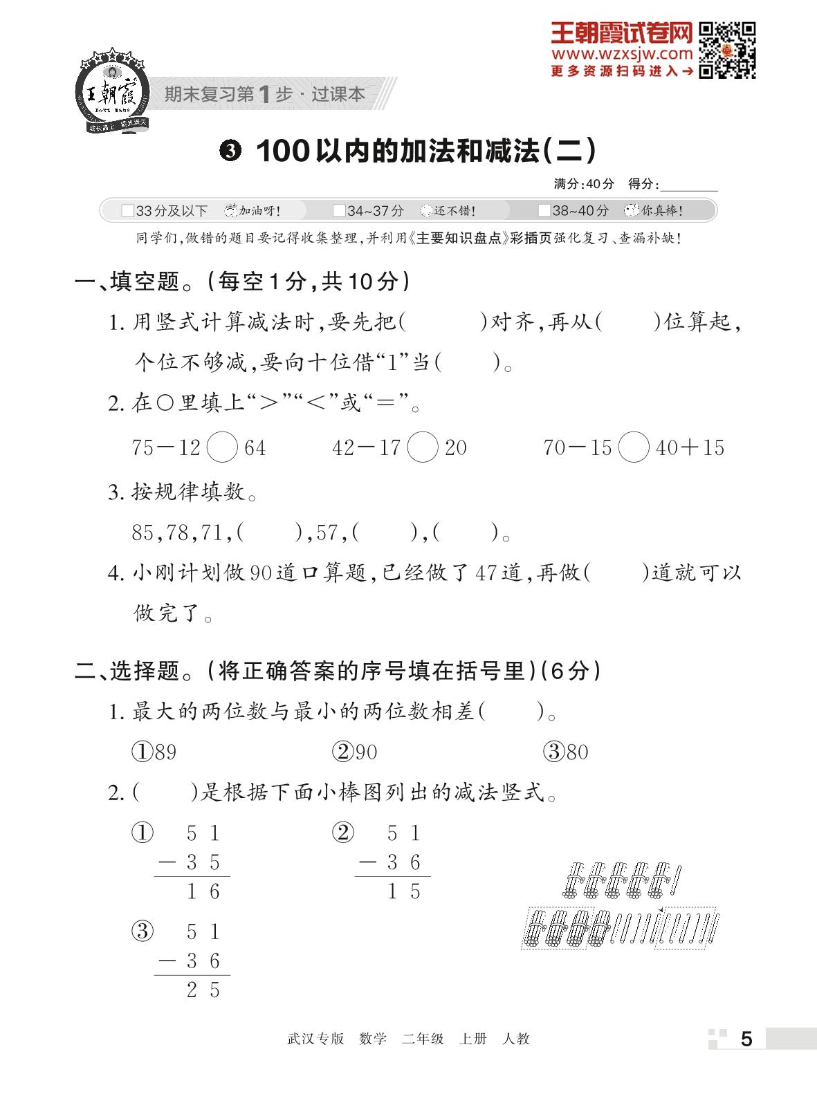 王朝霞期末过课本——3 100以内的加法和减法(二)二年级上册数学(人教版)_R221123154118791