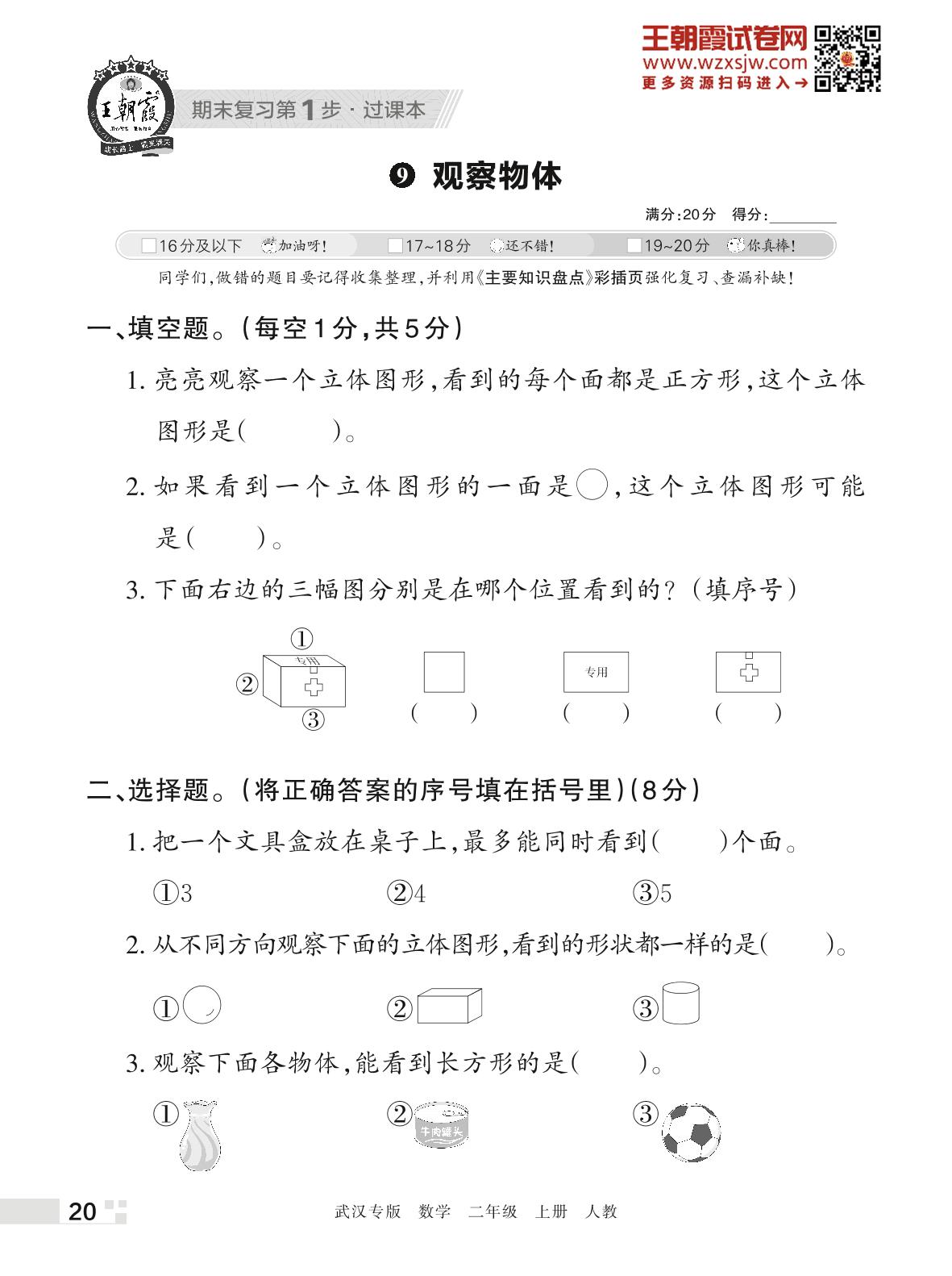 王朝霞期末过课本——9 观察物体二年级上册数学(人教版)_R221123154119927