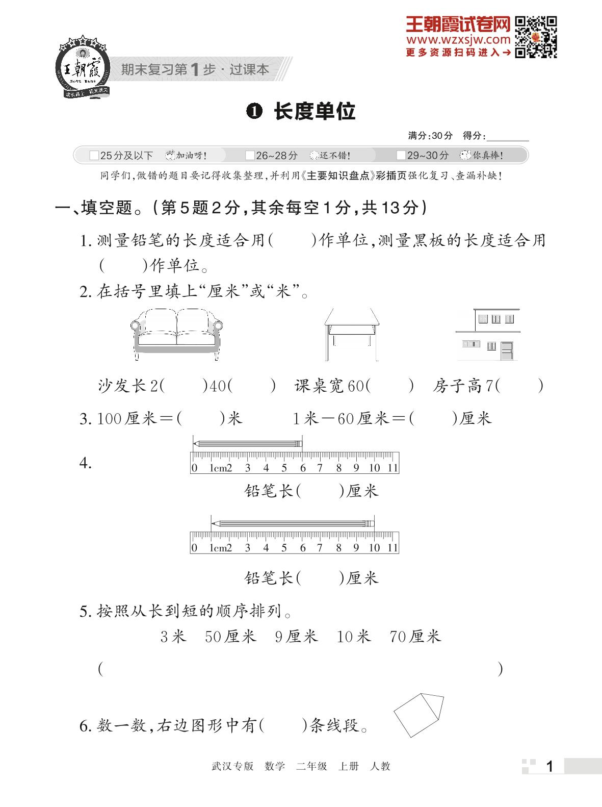王朝霞期末过课本——1 长度单位二年级上册数学(人教版)_R221123154119196