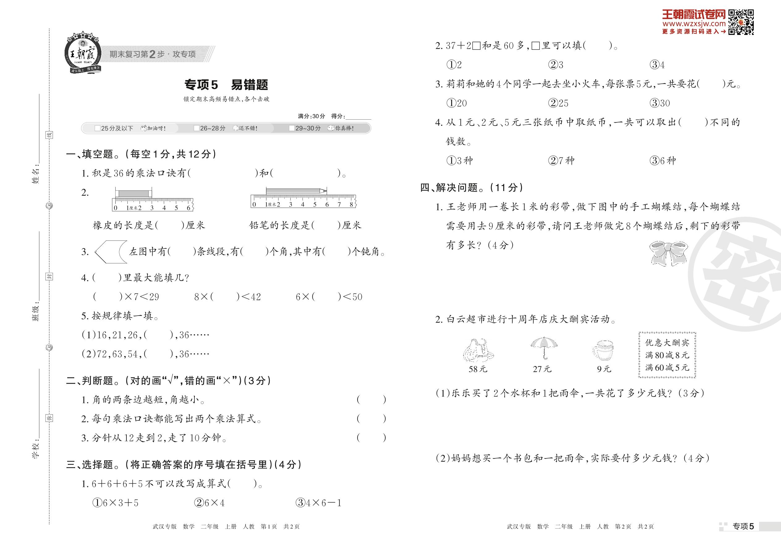 王朝霞期末专项卷——易错题二年级上册数学(人教版)_R221123154120134【5】