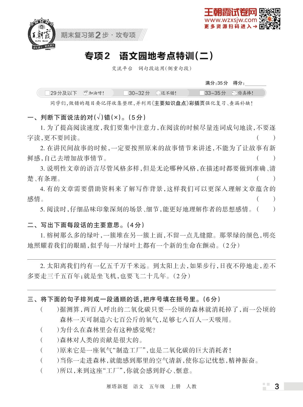 王朝霞期末专项卷——语文园地考点特训(二)五年级上册语文(人教版)_R221123154631655【2】
