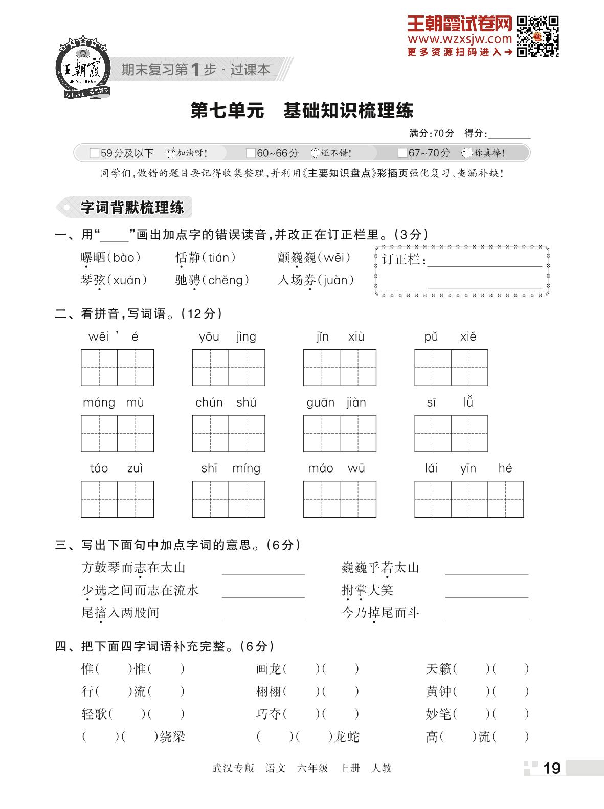 王朝霞期末过课本——第七单元 基础知识梳理练六年级上册语文(人教版)_R221123155104038