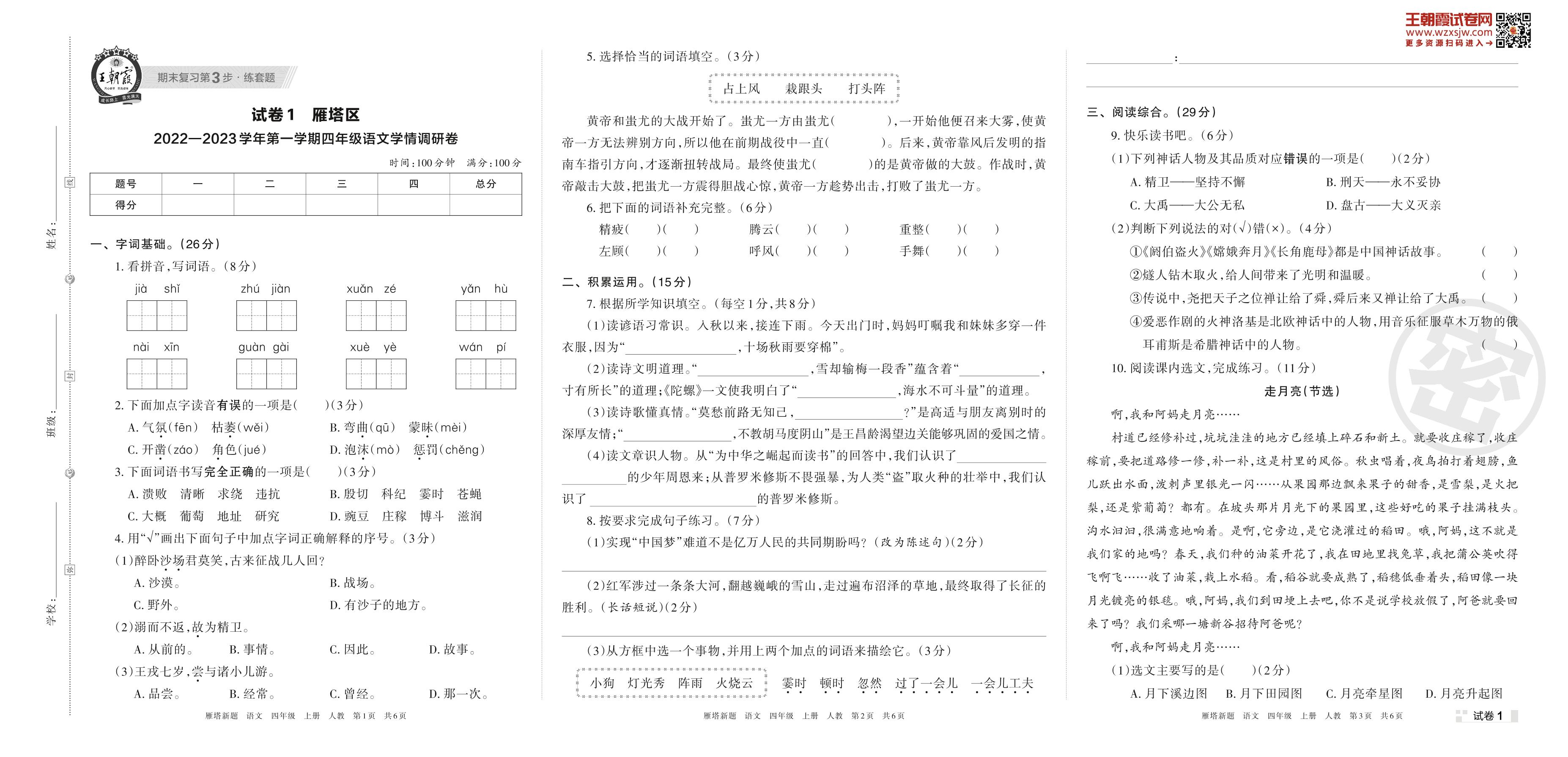 雁塔区2022—2023学年第一学期学情调研卷四年级上册语文(人教版)【1】