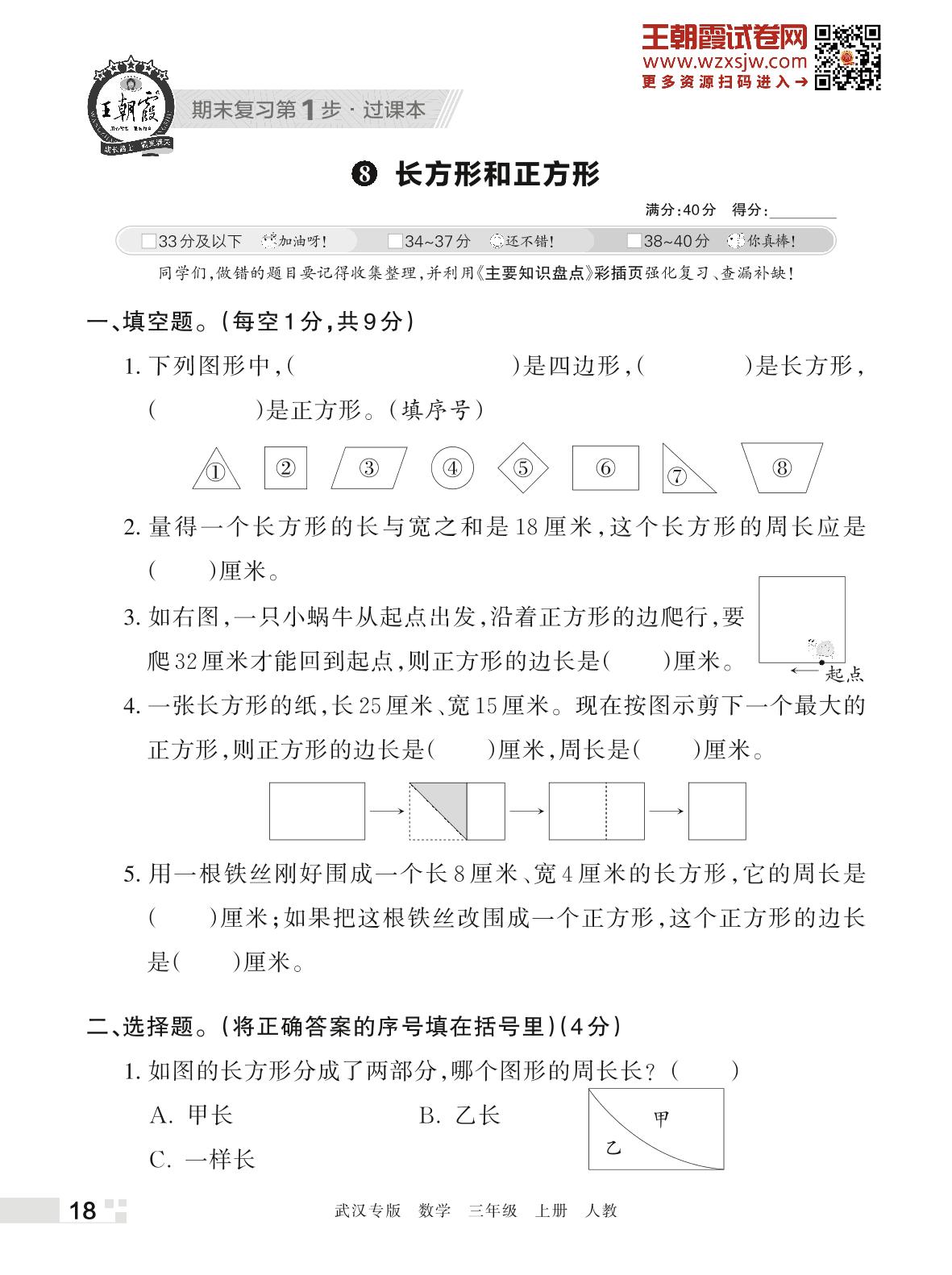 王朝霞期末过课本——8 长方形和正方形三年级数学上册(人教版)