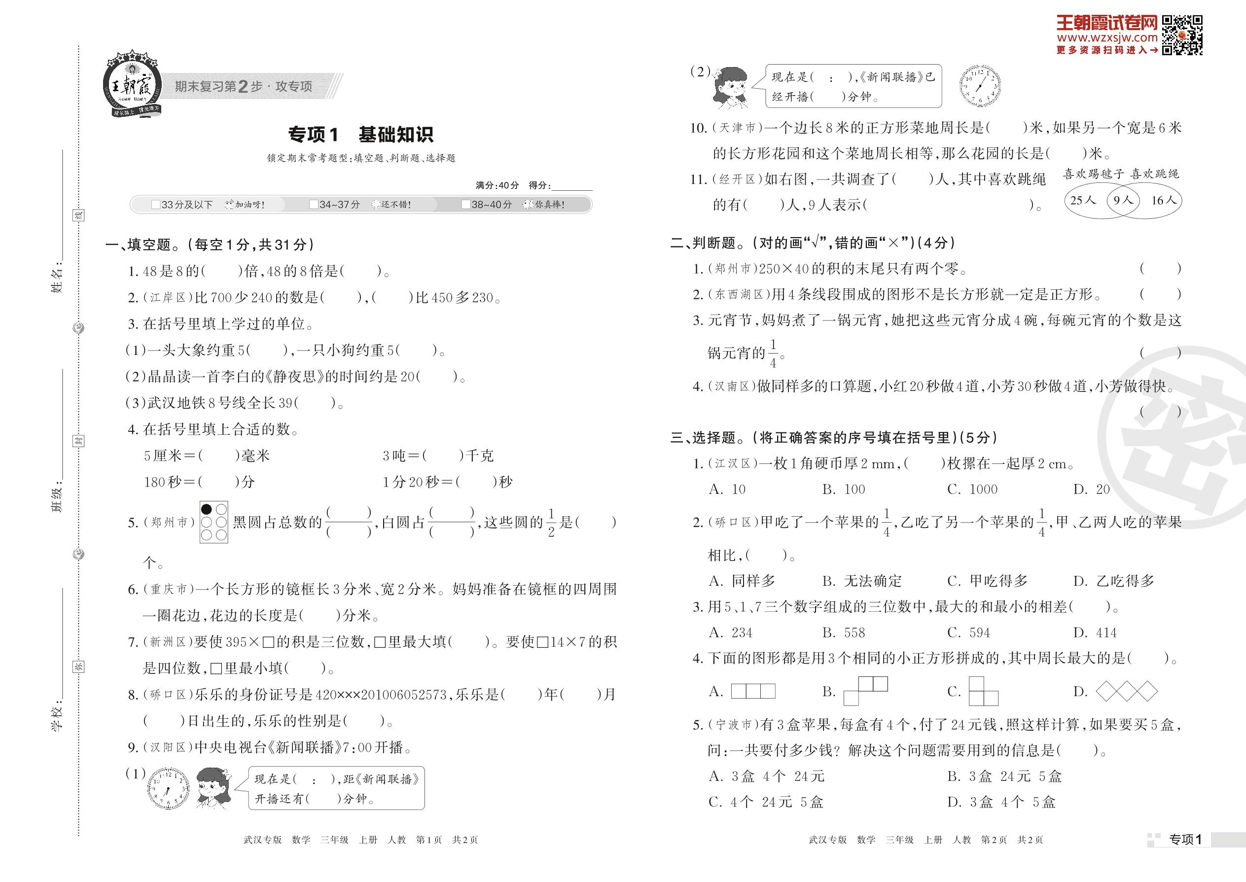 王朝霞期末专项卷——基础知识三年级上册数学(人教版)_R221123155724803【1】