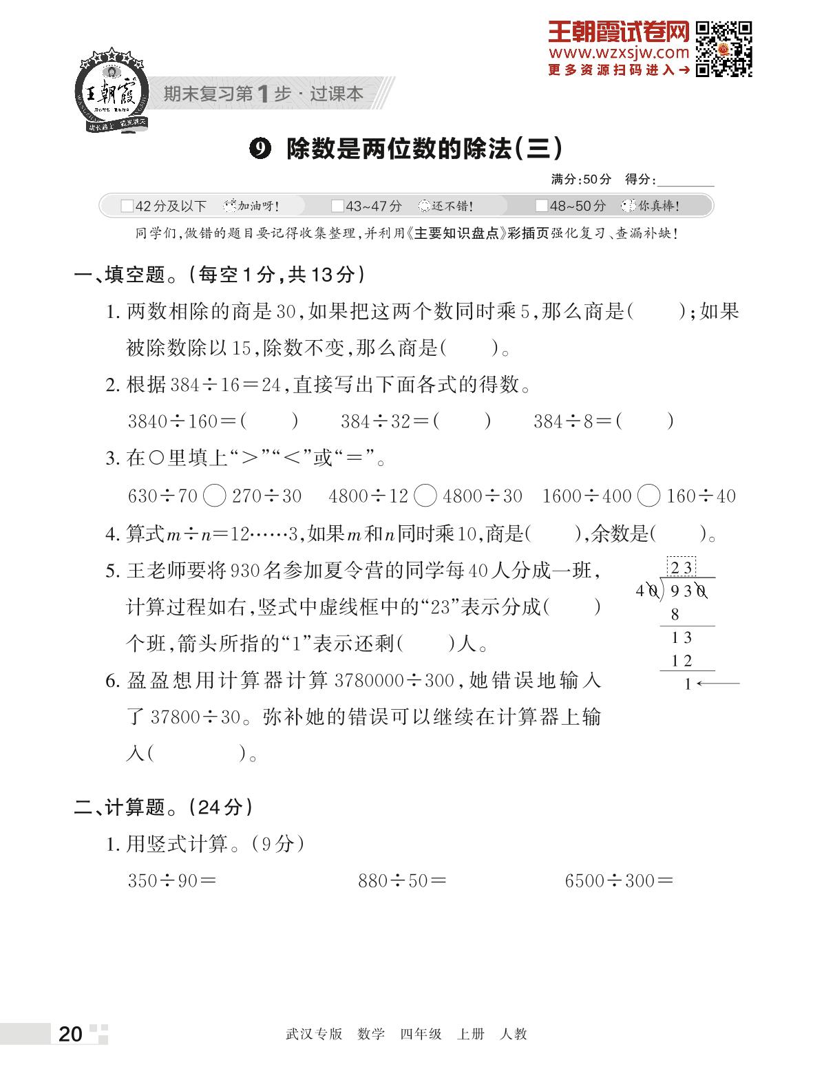 王朝霞期末过课本——9 除数是两位数的除法(三)四年级数学上册(人教版)
