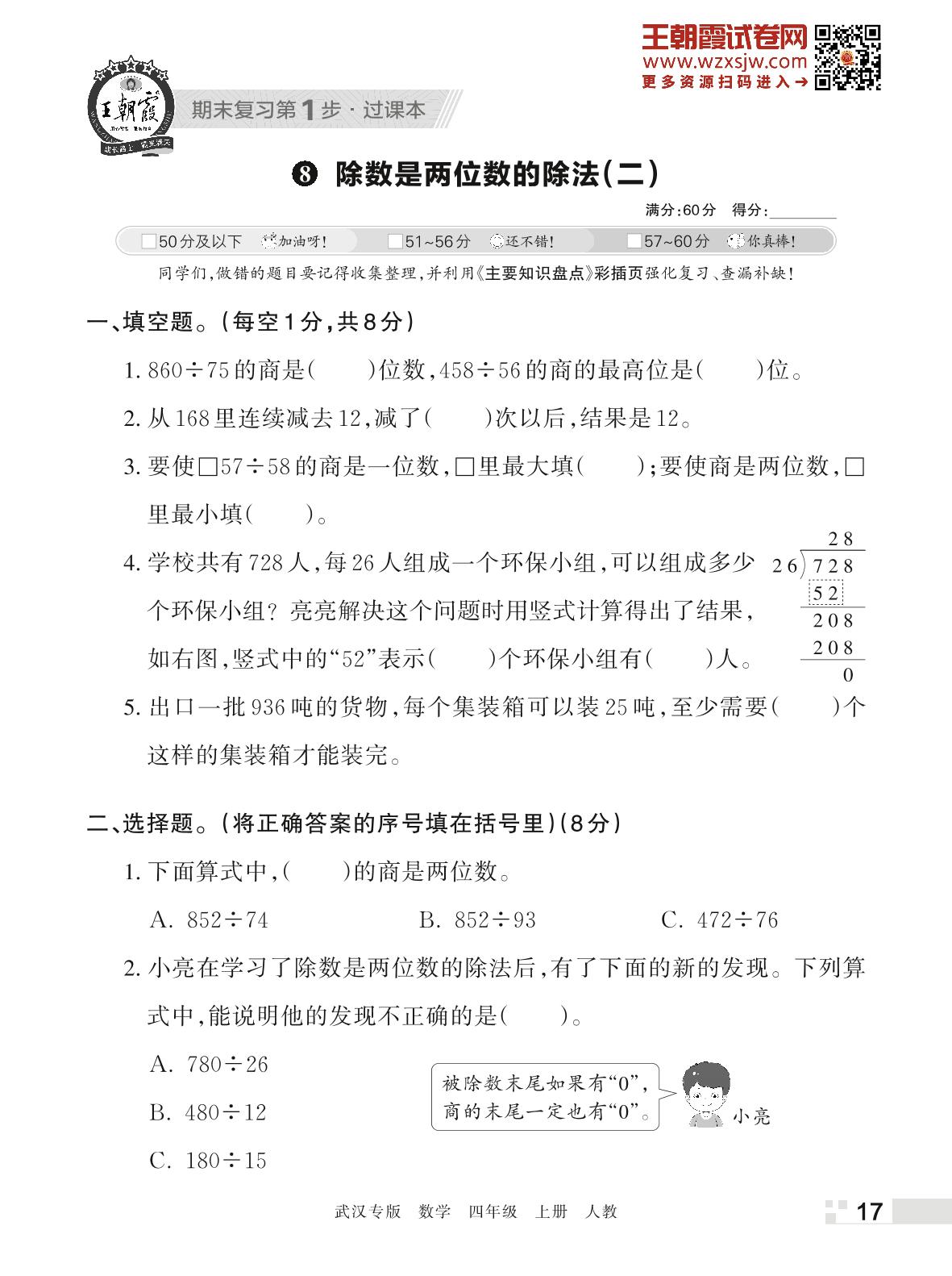 王朝霞期末过课本——8 除数是两位数的除法(二)四年级数学上册(人教版)