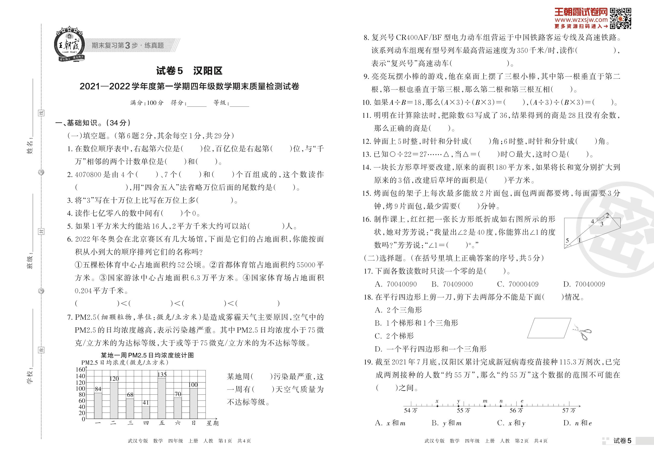 汉阳区2021—2022学年度第一学期四年级数学期末质量监测试卷(人教版)【5】