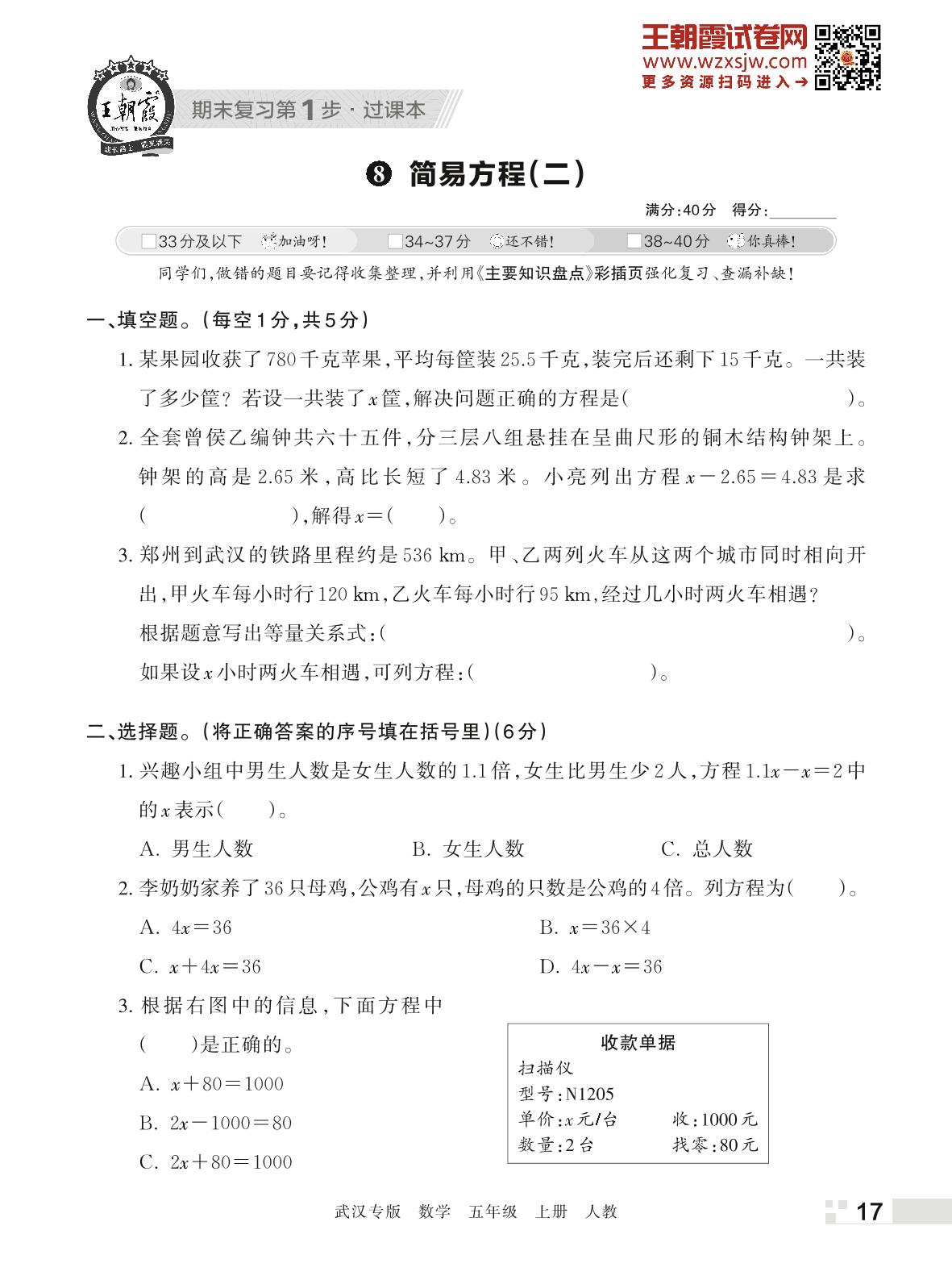 王朝霞期末过课本——8 简易方程(二)五年级数学上册(人教版)_R221123161352137