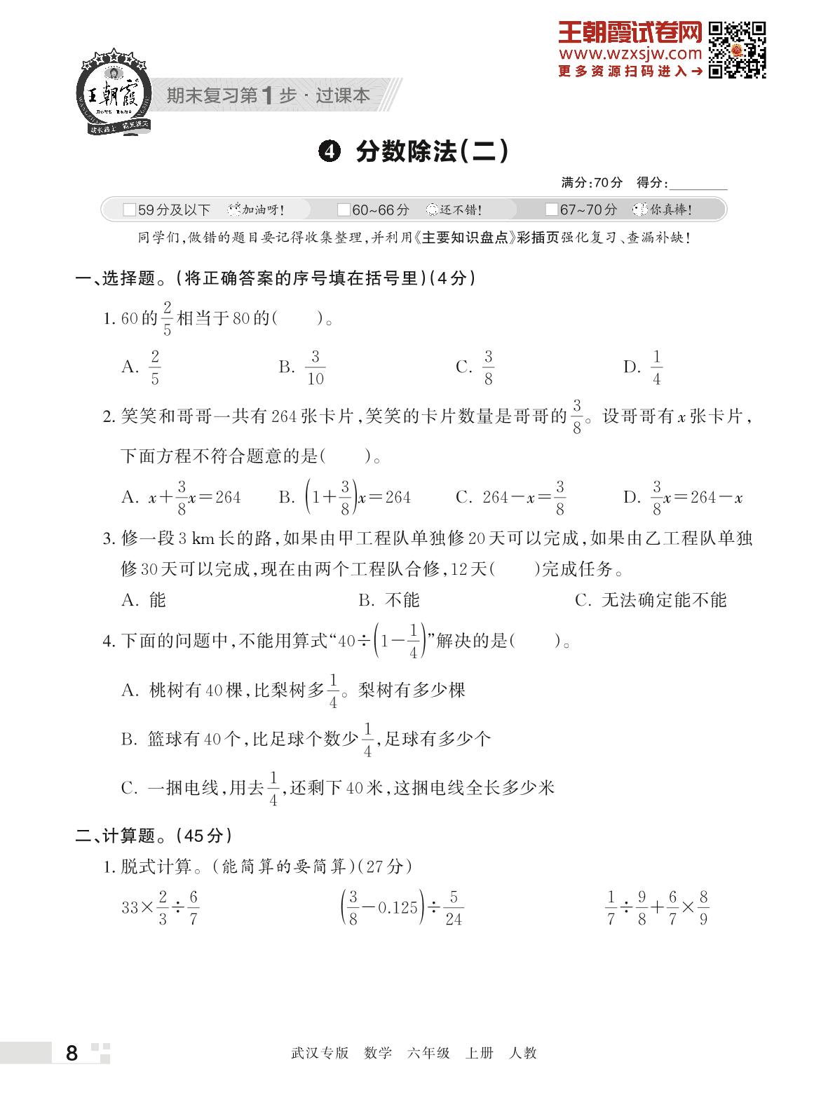 王朝霞期末过课本——4 分数除法(二)六年级上册数学(人教版)_R221123162911237
