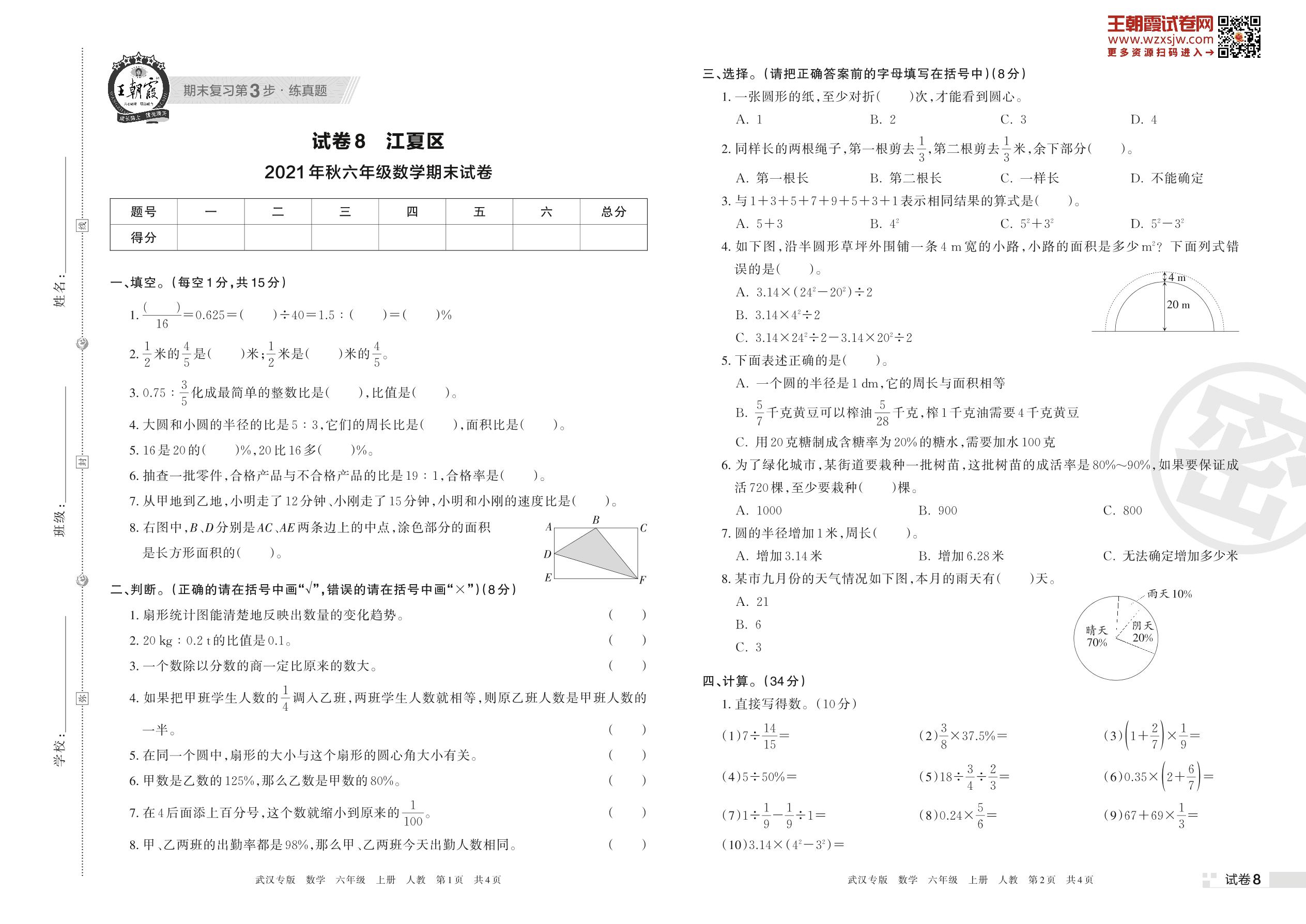 江夏区2021年秋六年级期末试卷(人教版)【8】