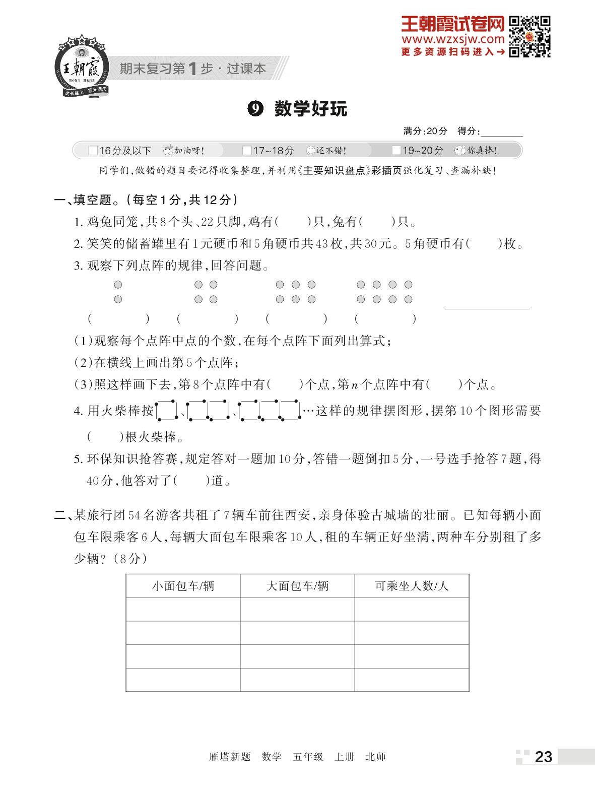 王朝霞期末过课本——9 数学好玩五年级上册数学(北师版)_R221123163003360