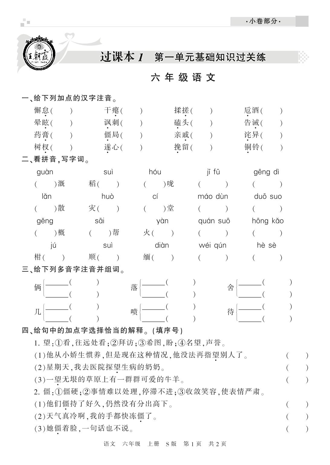 王朝霞期末过课本——基础知识过关练六年级上册语文(S版)_R210802115551【0】