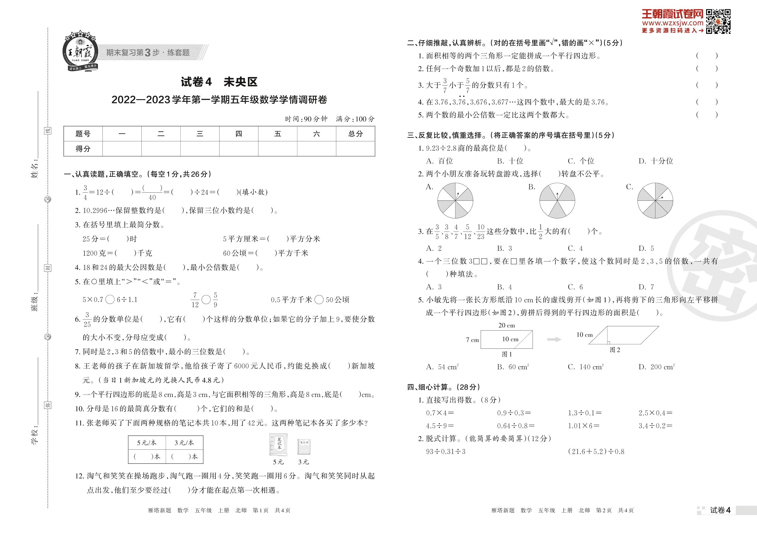 未央区2022—2023学年第一学期学情调研卷五年级上册数学(北师版)【4】