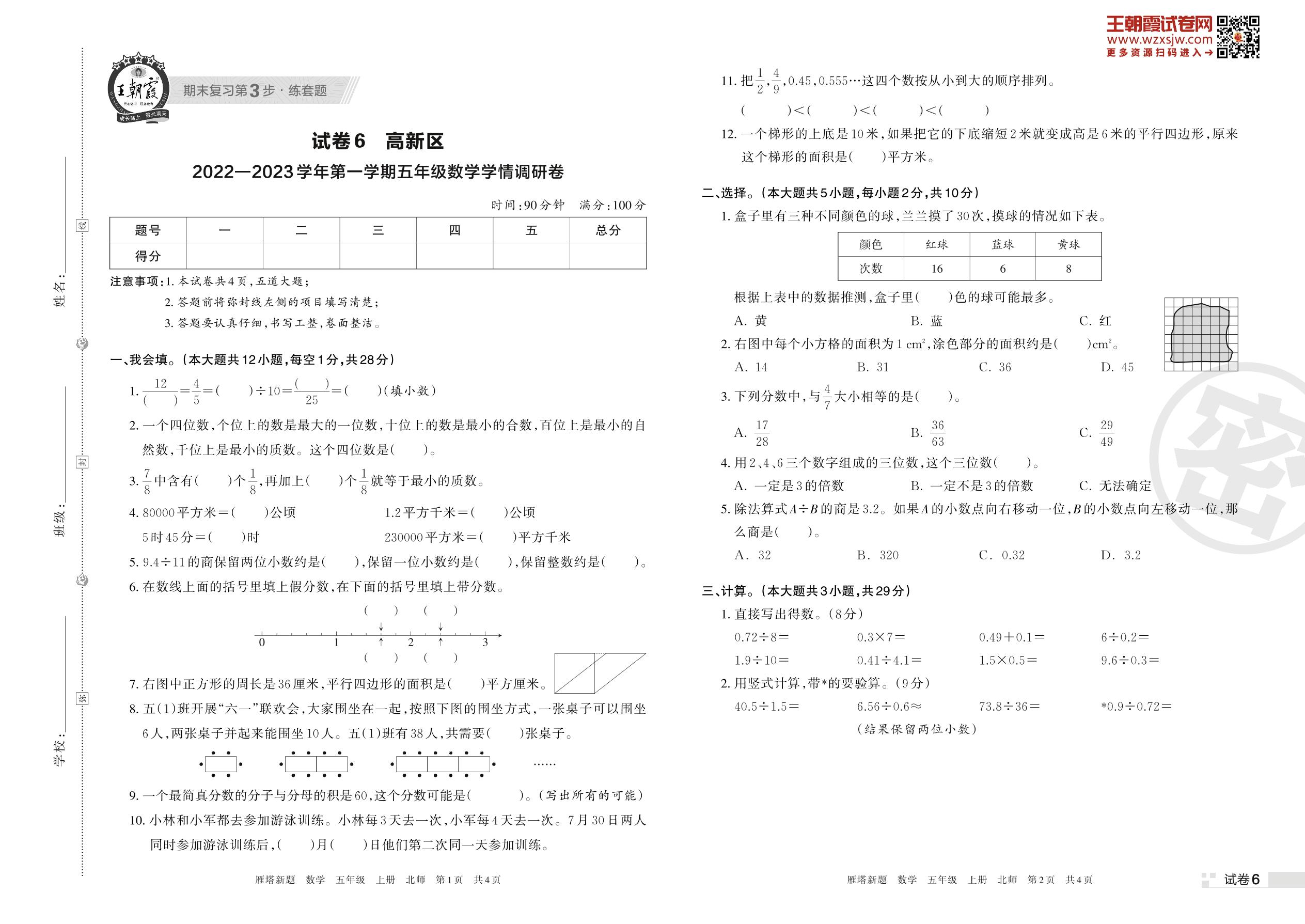 高新区2022—2023学年第一学期学情调研卷五年级上册数学(北师版)【6】