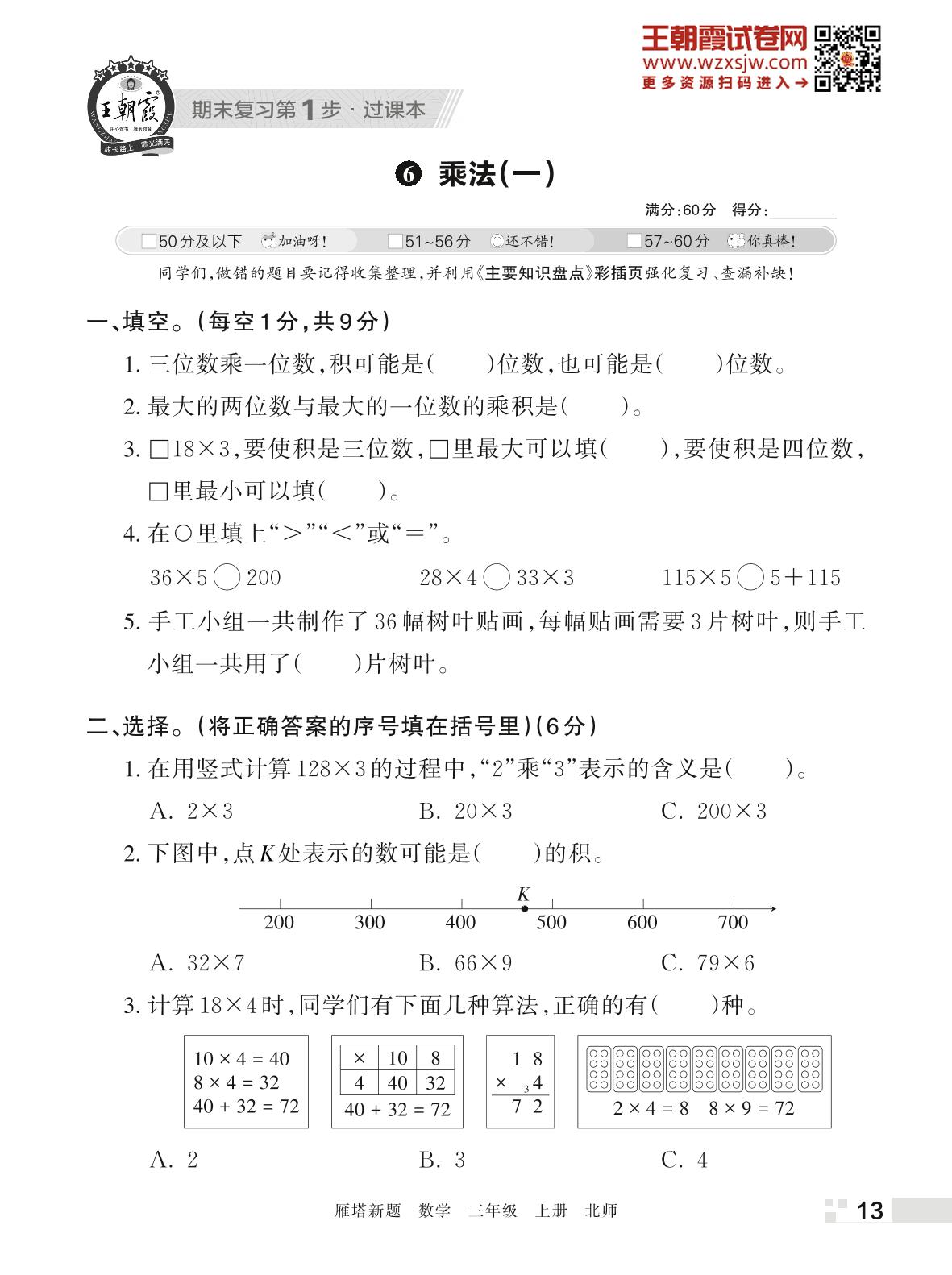 王朝霞期末过课本——6 乘法(一)三年级上册数学(北师版)_R221123165134299
