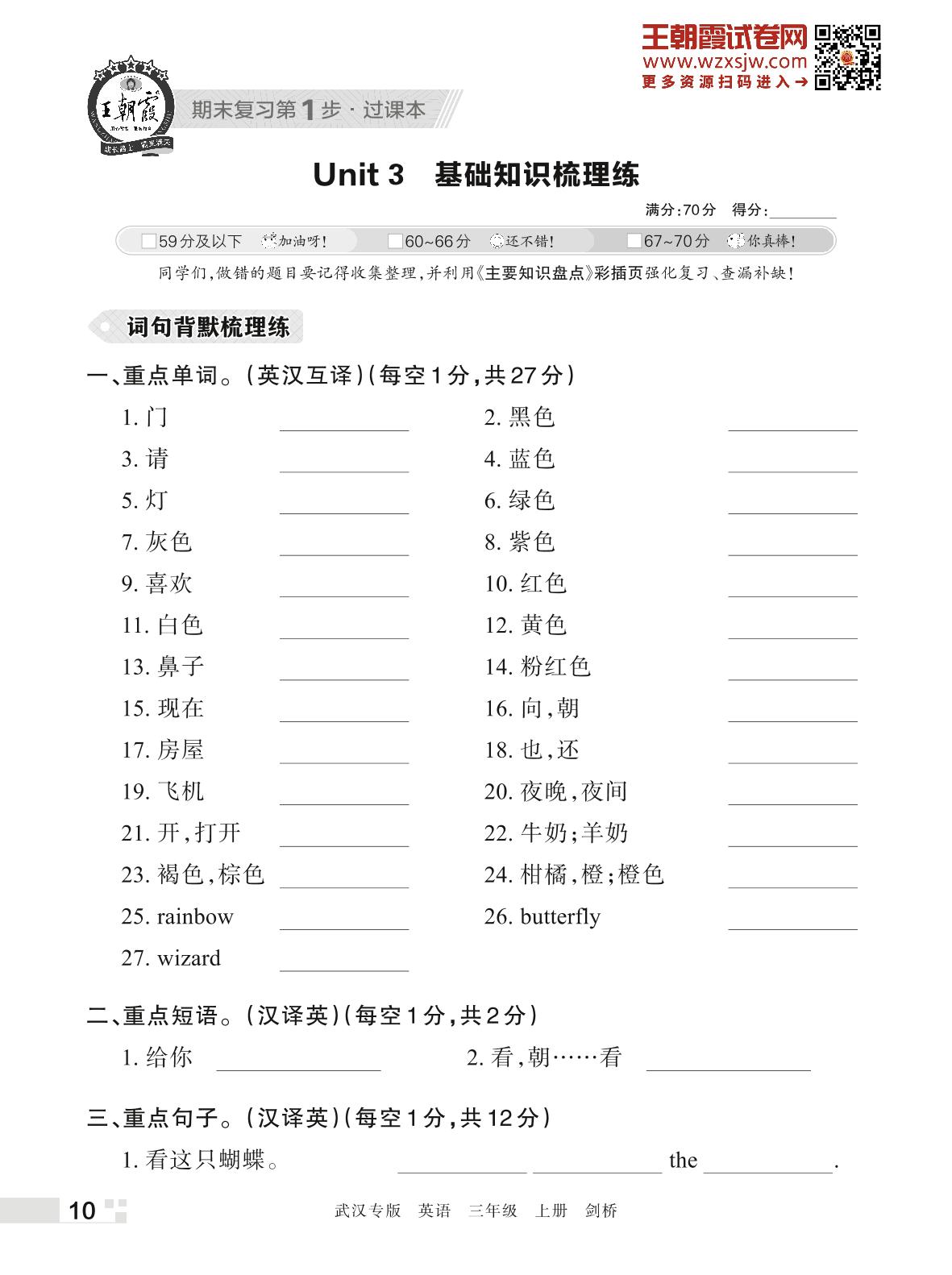 王朝霞期末过课本——Unit 3 基础知识梳理练三年级上册英语(剑桥版)