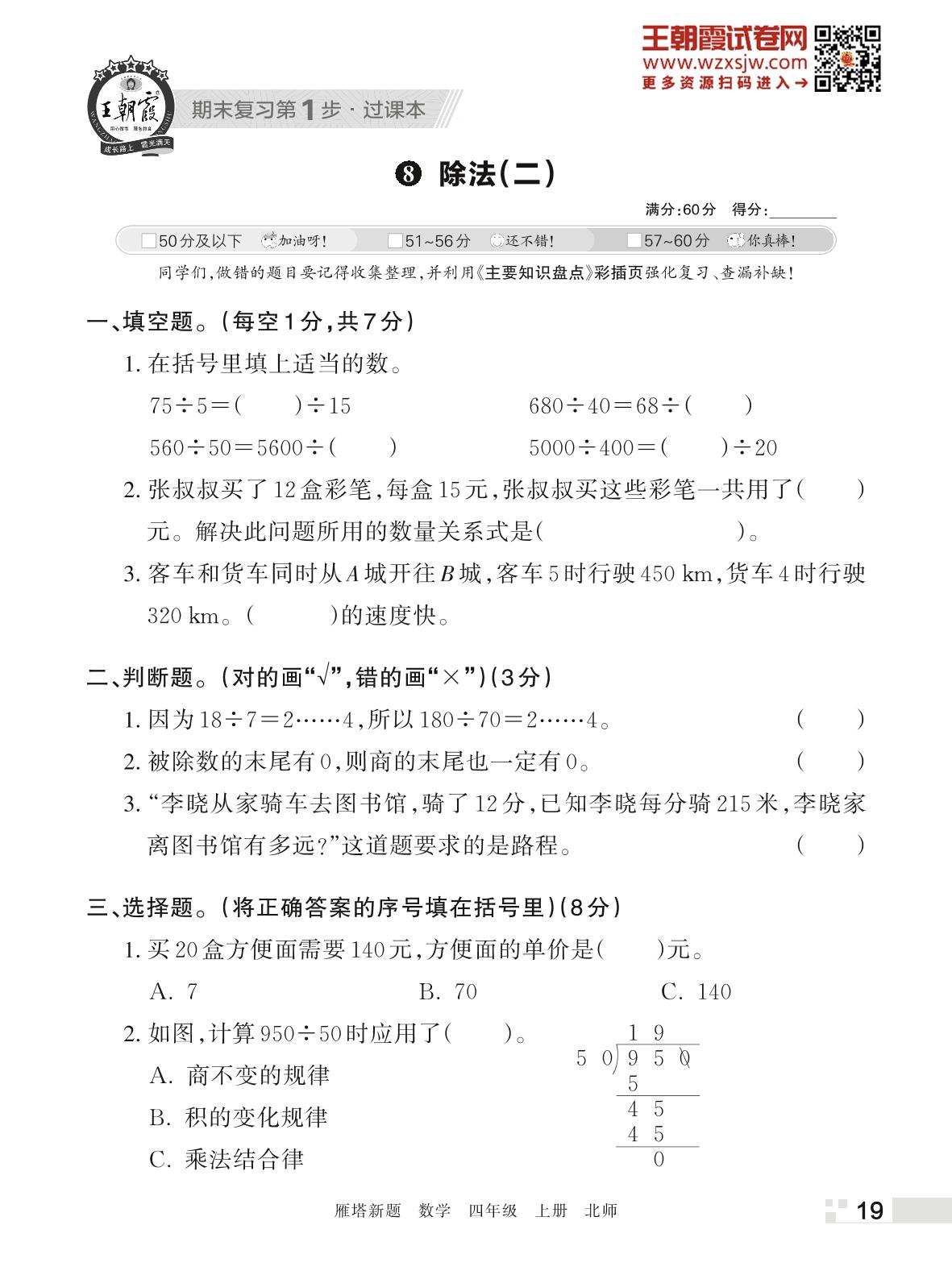 王朝霞期末过课本——8 除法(二)四年级上册数学(北师版)_R221123170012832