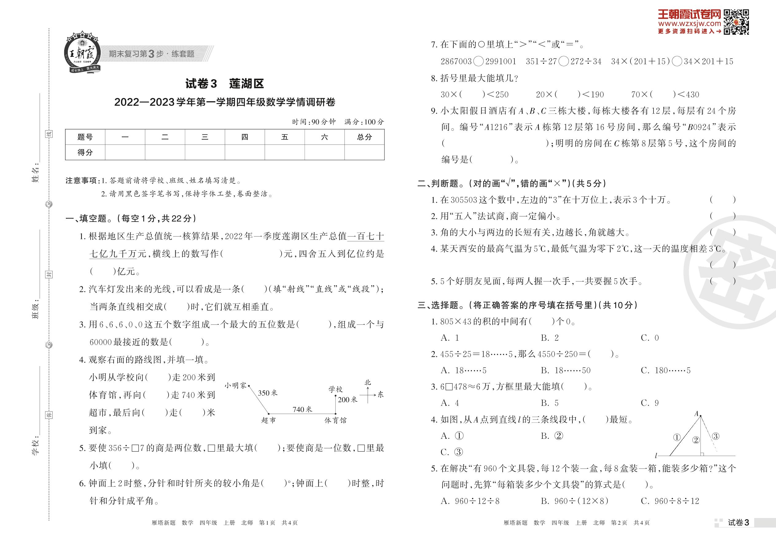 莲湖区2022—2023学年第一学期学情调研卷四年级上册数学(北师版)【3】