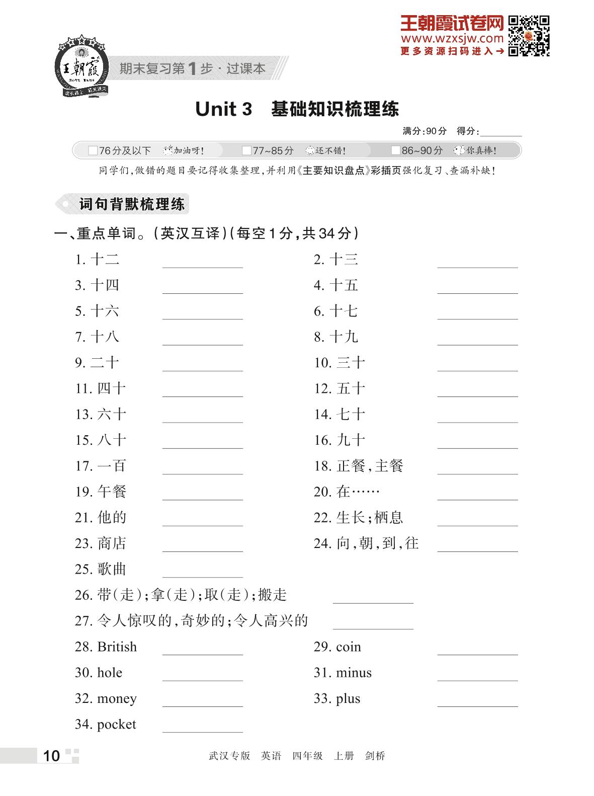 王朝霞期末过课本——Unit 3 基础知识梳理练四年级上册英语(剑桥版)