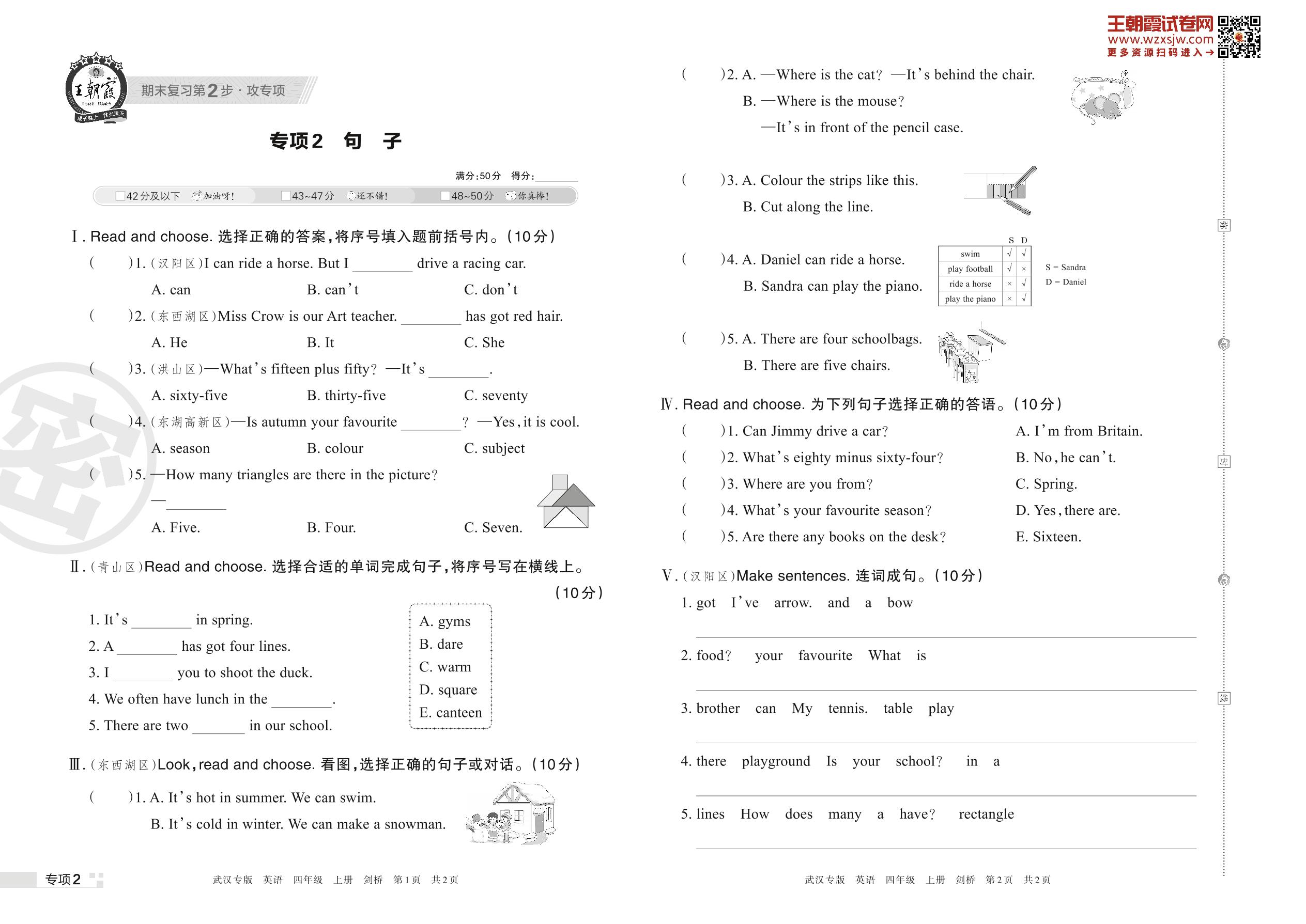 王朝霞期末专项卷——句子四年级上册英语(剑桥版)【2】