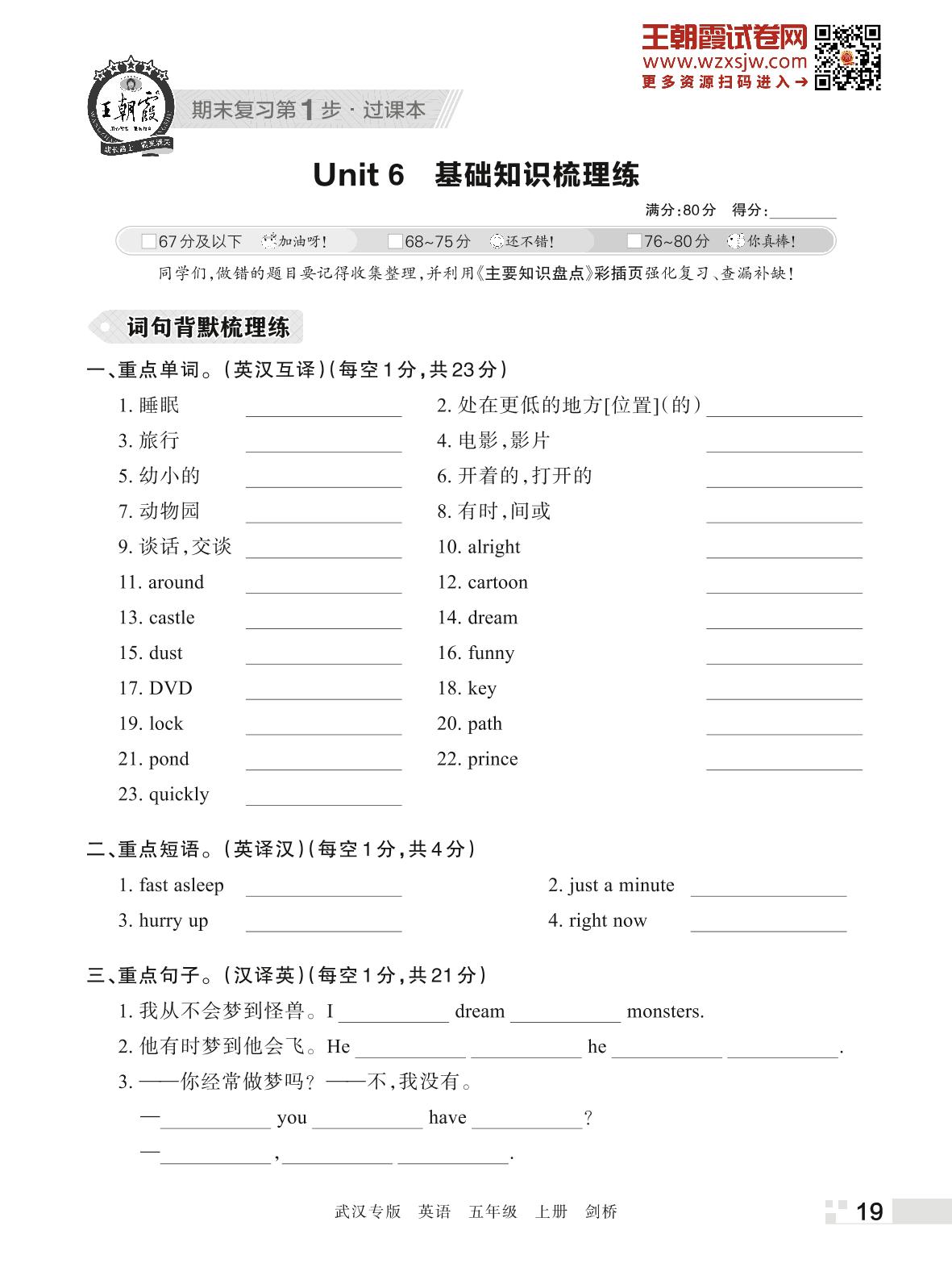 王朝霞期末过课本——Unit 6 基础知识梳理练五年级上册英语(剑桥版)