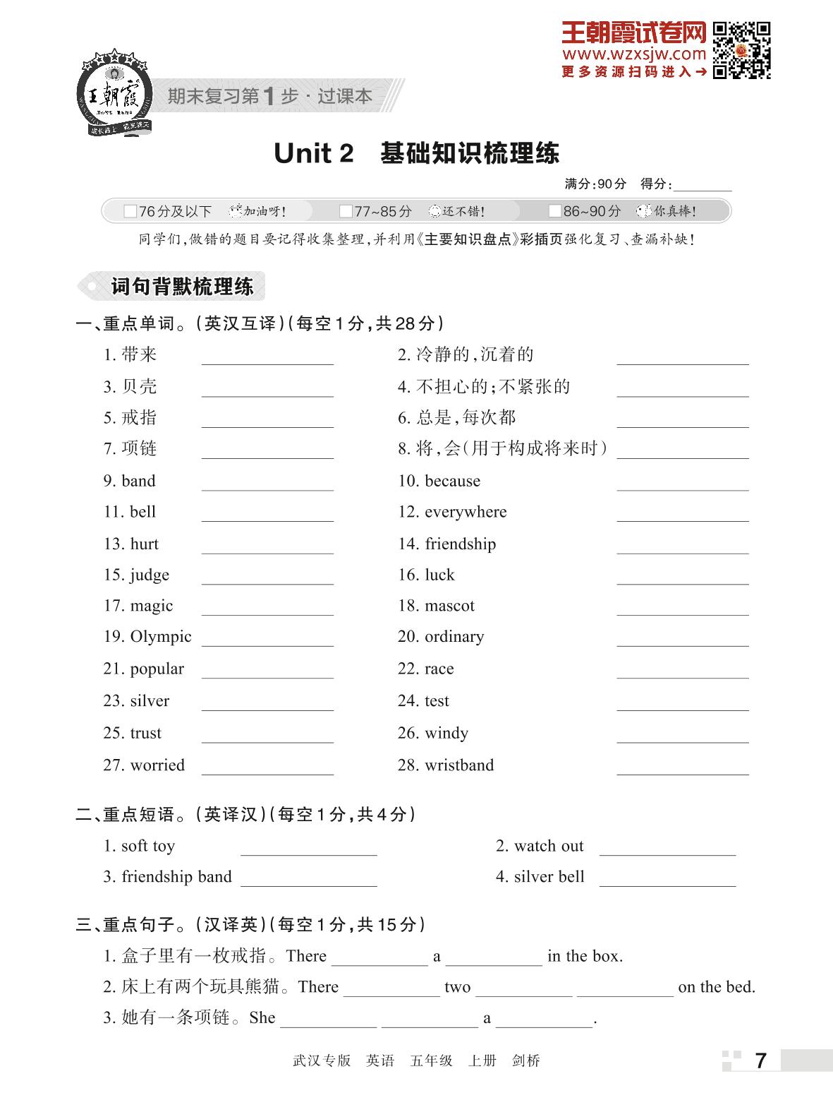 王朝霞期末过课本——Unit 2 基础知识梳理练五年级上册英语(剑桥版)