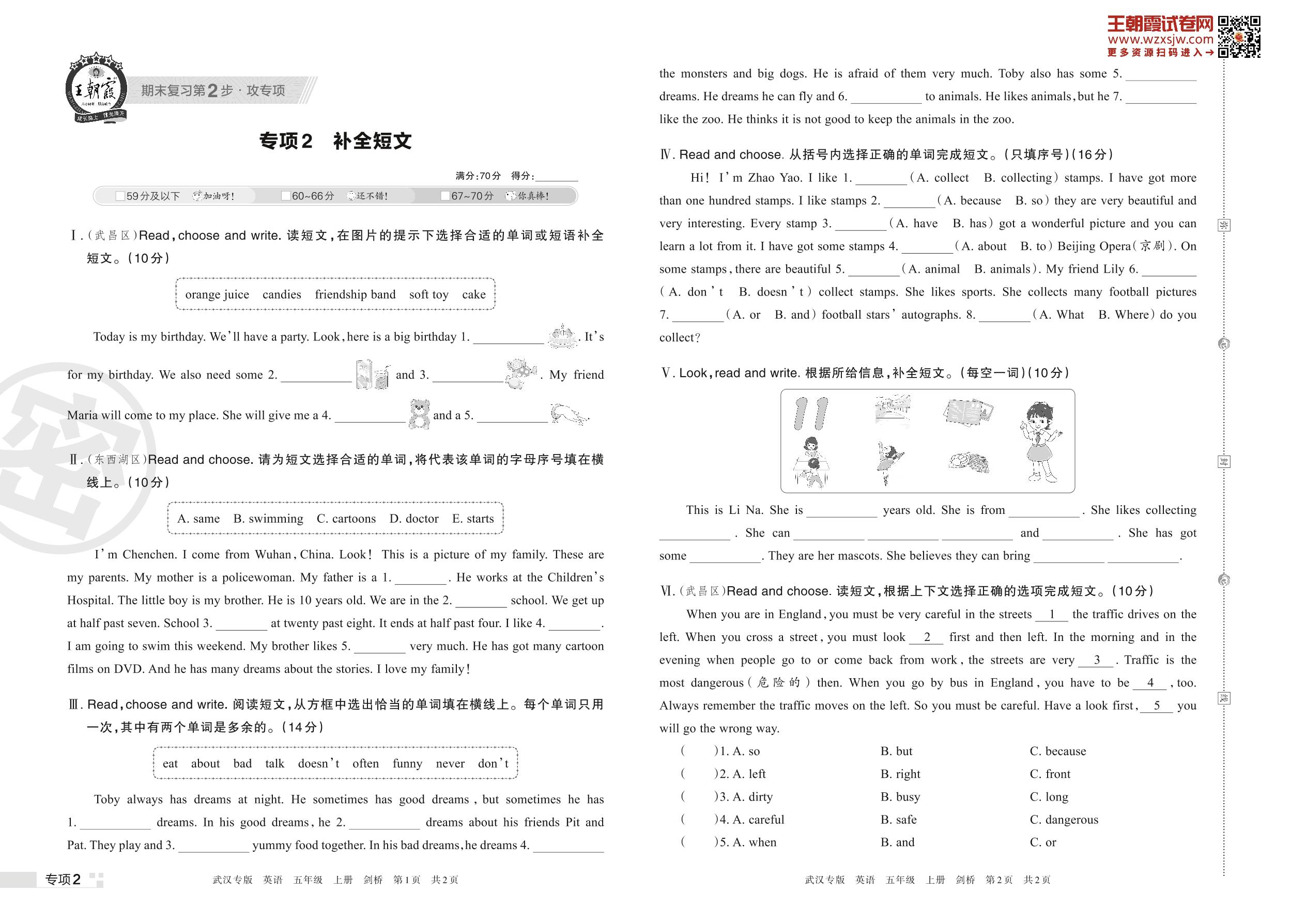 王朝霞期末专项卷——补全短文五年级上册英语(剑桥版)【2】